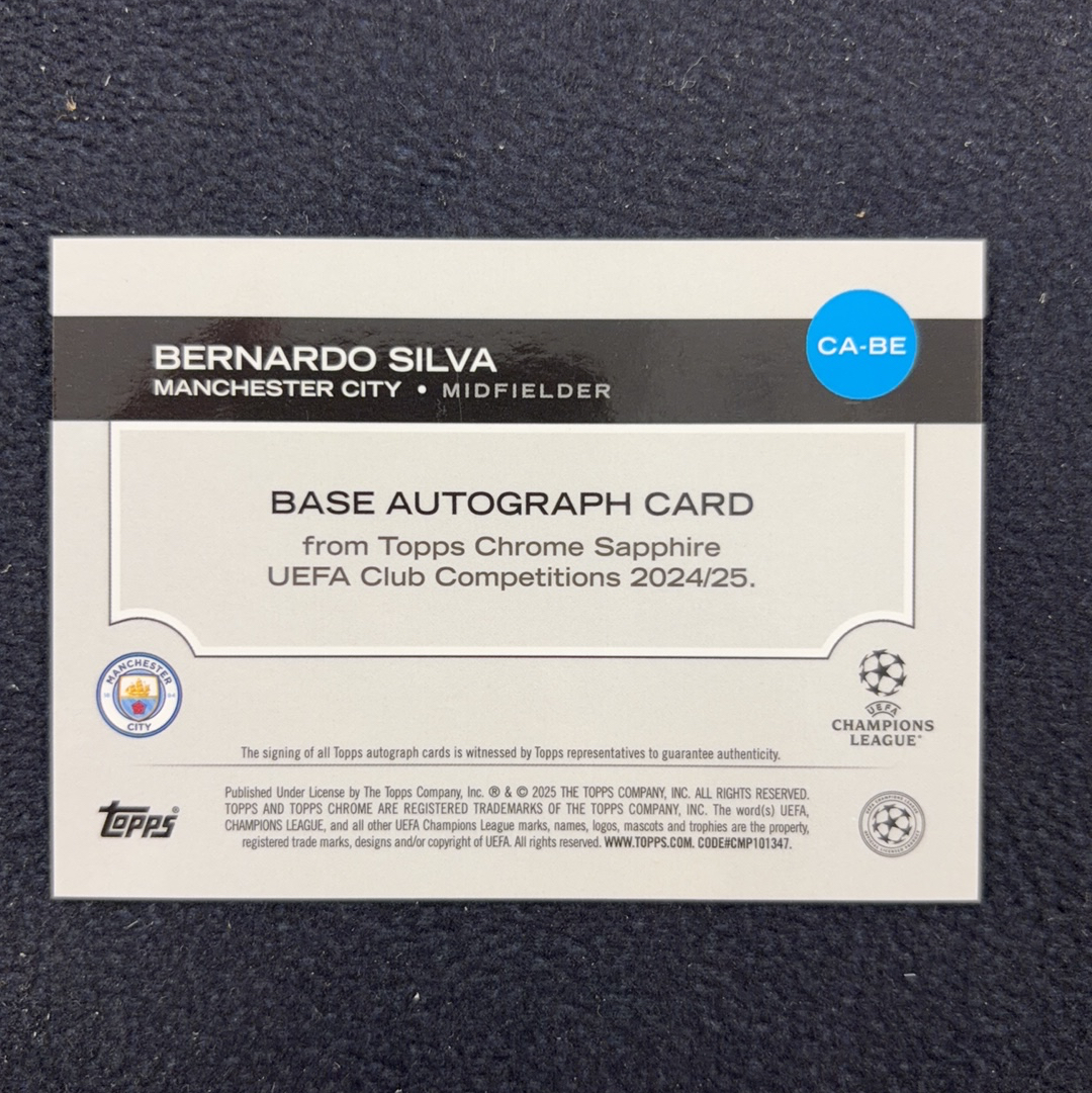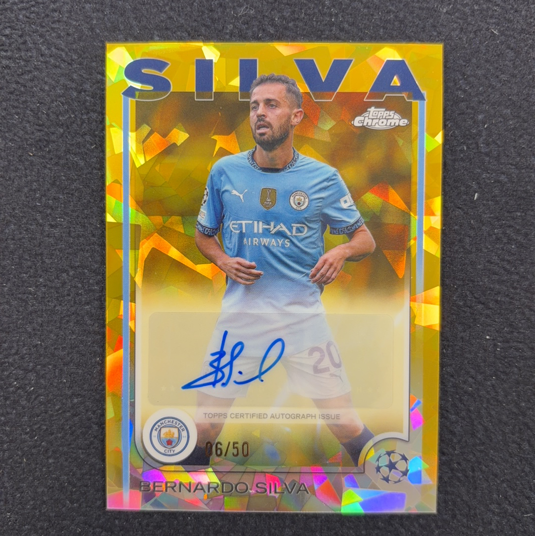 2025 topps chrome 欧冠 蓝宝石B席 席尔瓦(Bernardo Silva) 本菲卡 摩纳哥 曼城 葡萄牙 50编 签字 金碎冰折