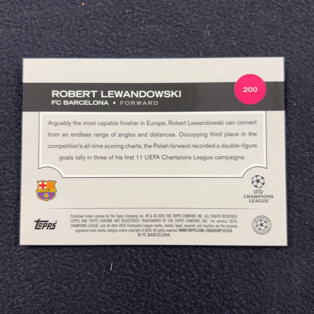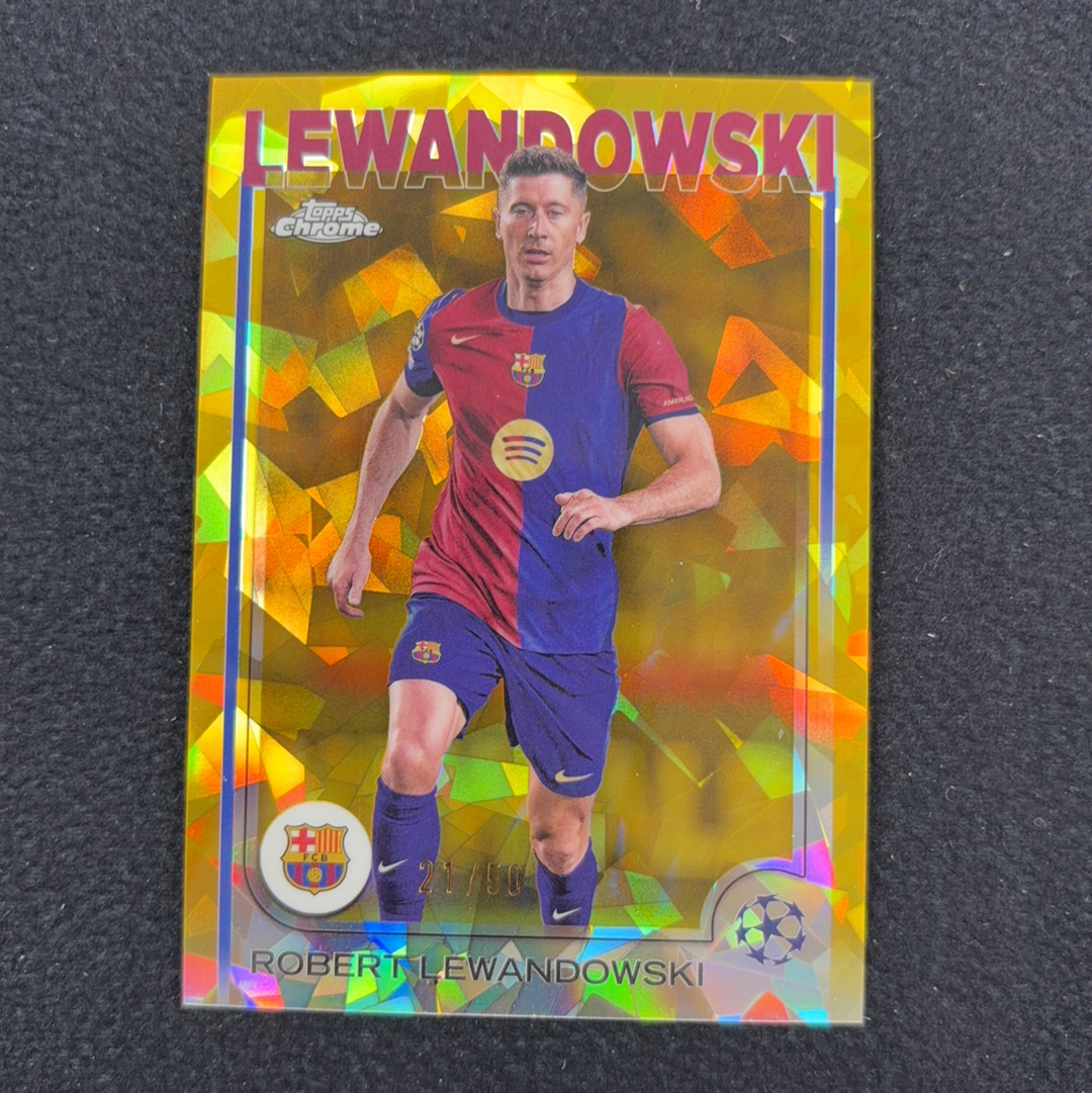 2024-25 Topps Chrome TC 欧冠 蓝宝石 Robert Lewandowksi 莱万多夫斯基 50编 金碎冰折 巴萨 巴塞罗那 折射 收藏必备(jjj)