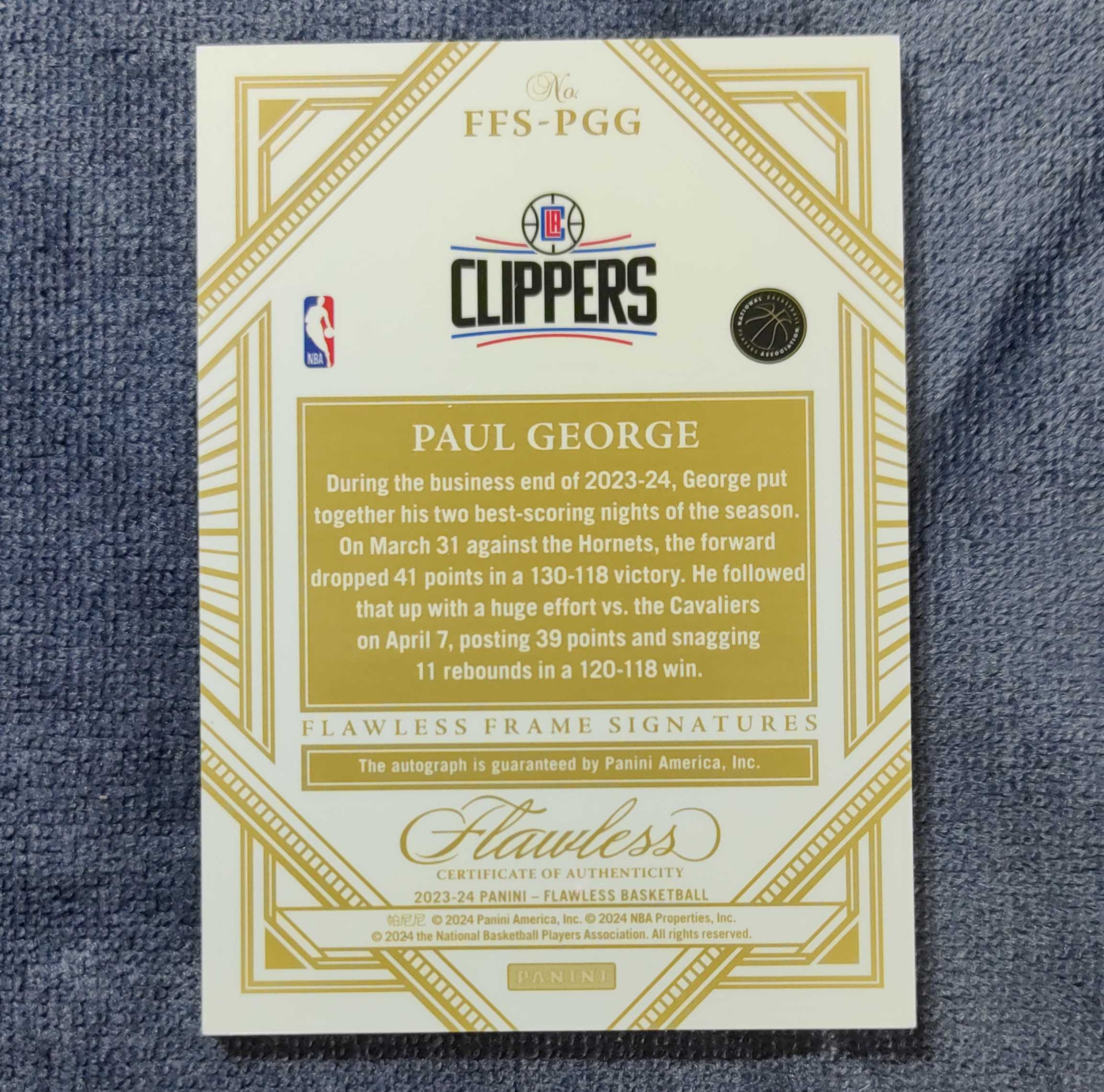 2023-24 Panini Flawless Paul George 【起飞代卖】手提 保罗 乔治 泡椒 5编 5/5 尾编 绿宝石 快船皮 凑套必备 卡品完美 完美卡签 错过拍大腿 全网首张