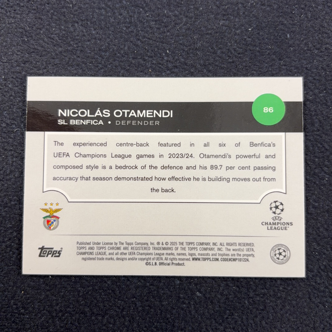 2025 Topps Chrome 欧战蓝宝石 NICOLÁS OTAMENDI 奥塔门迪 黄碎冰折 75编 阿根廷 本菲卡