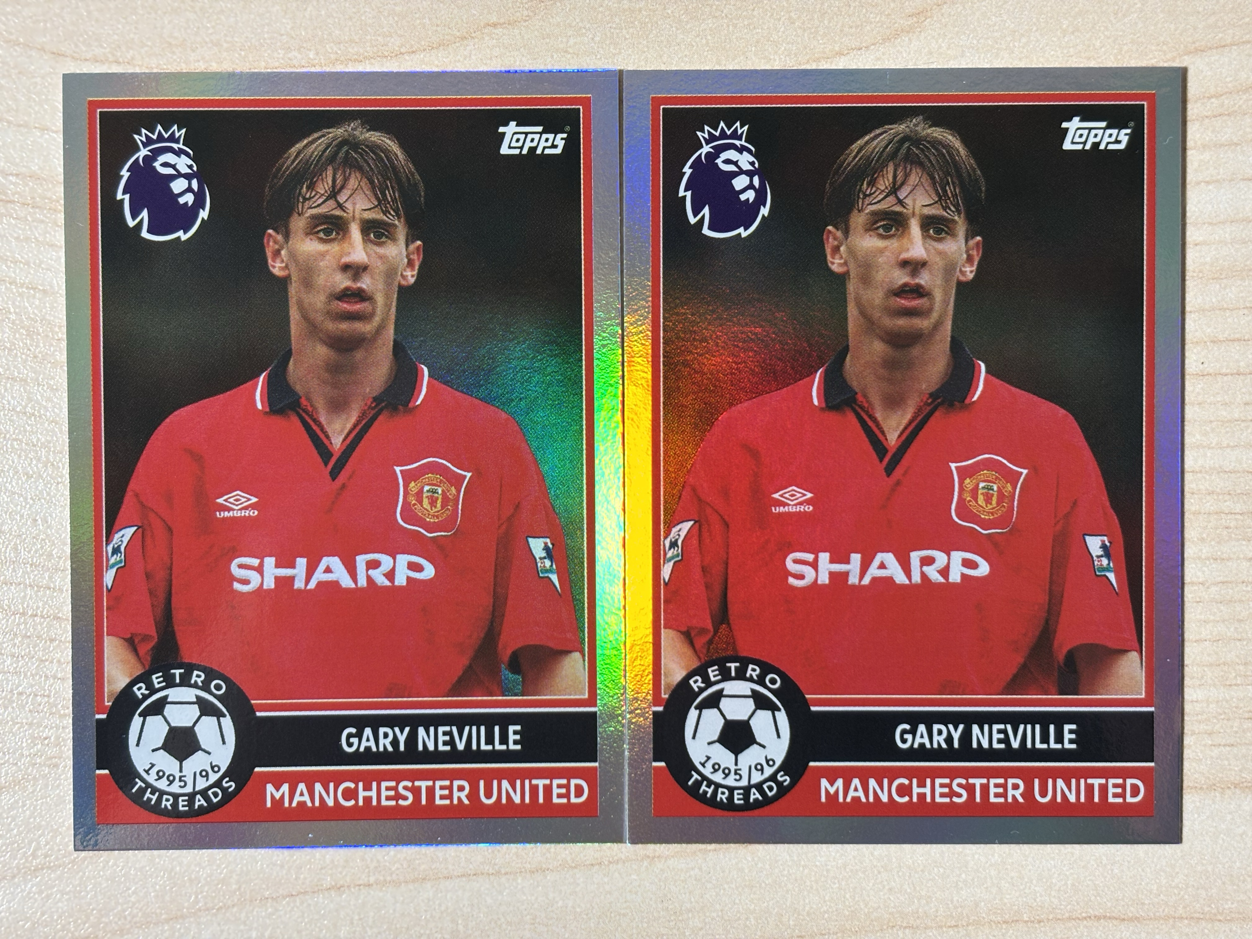 2025 Topps Premier League Gary Neville 英超 加里 内维尔 复古连接特卡 曼联 2张lot打包 卡品如图 Q