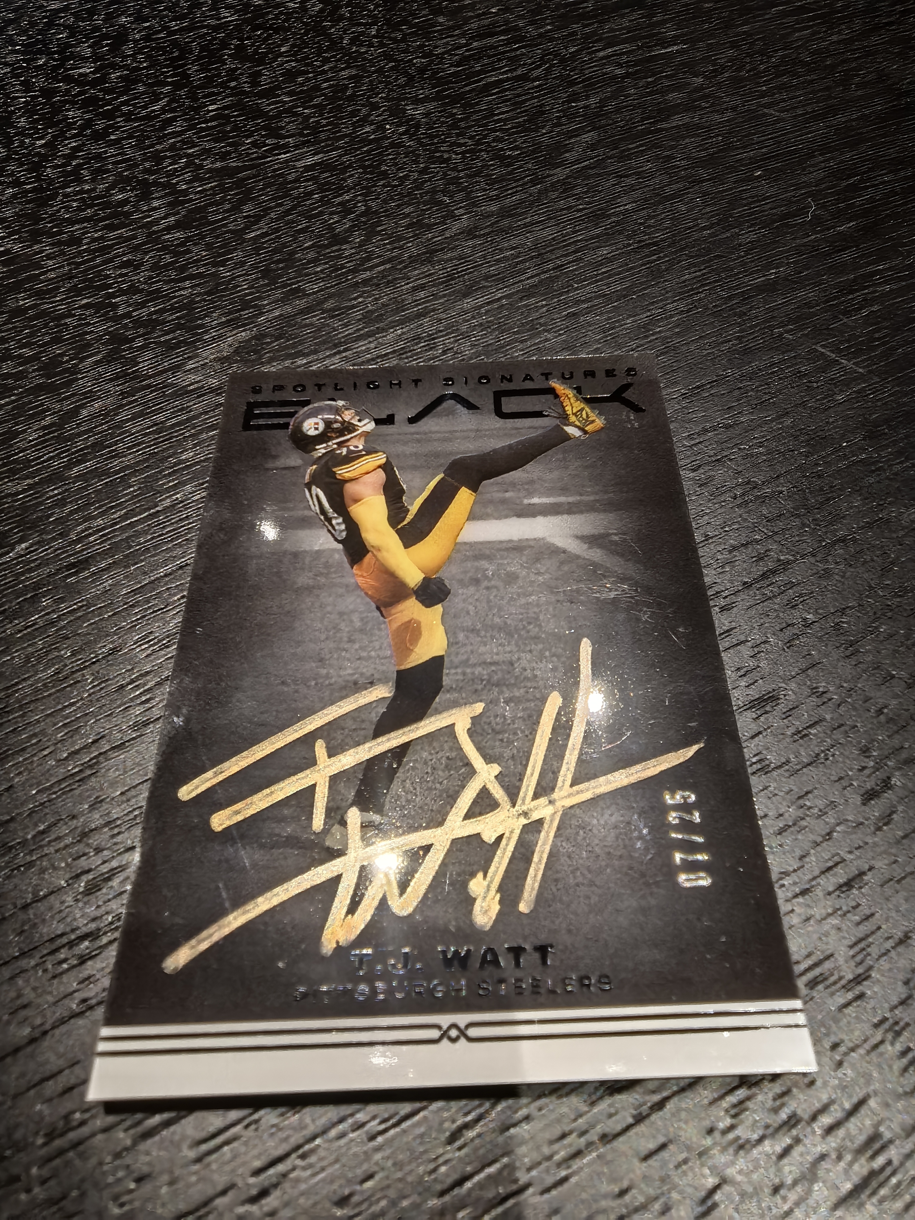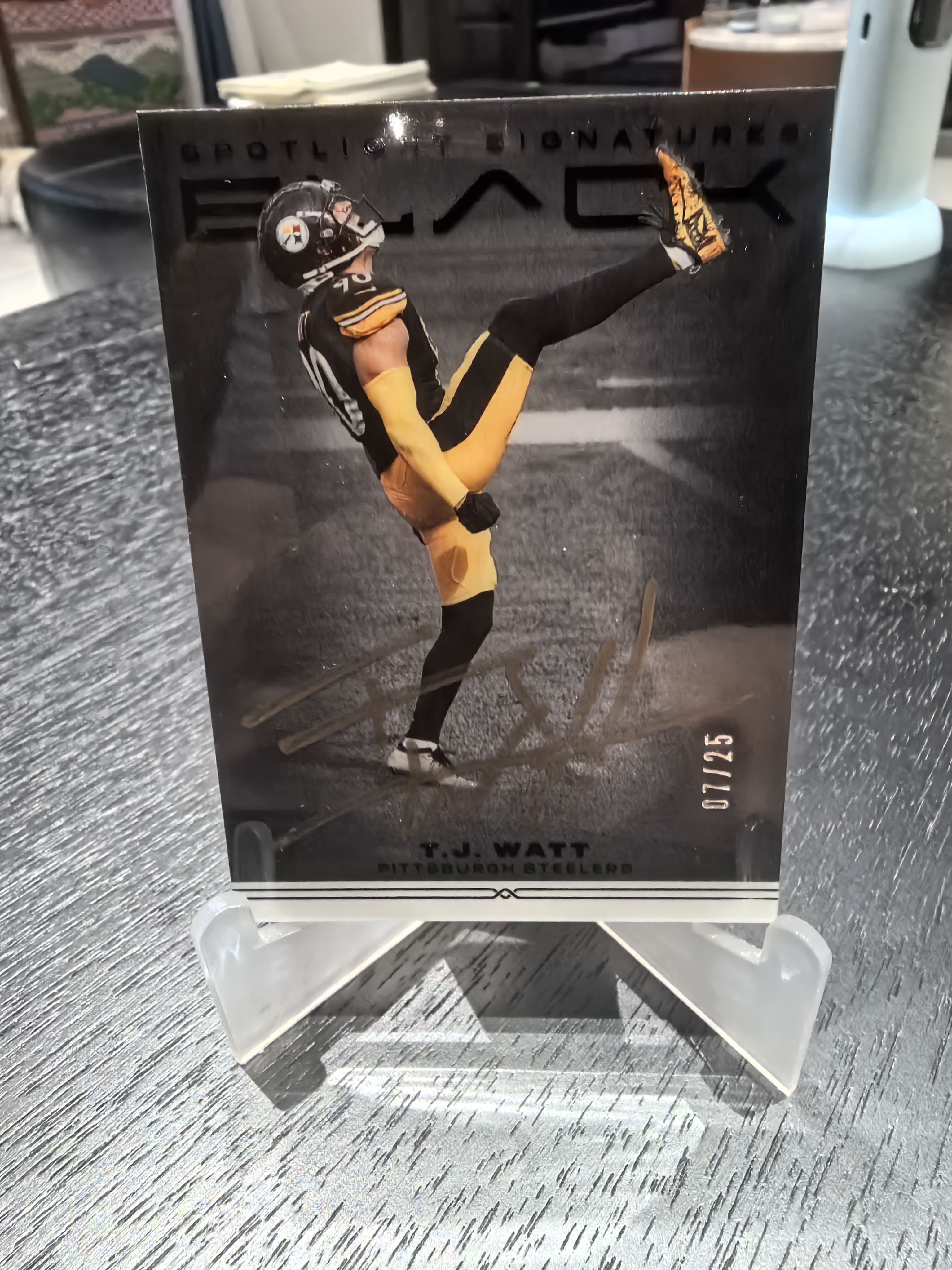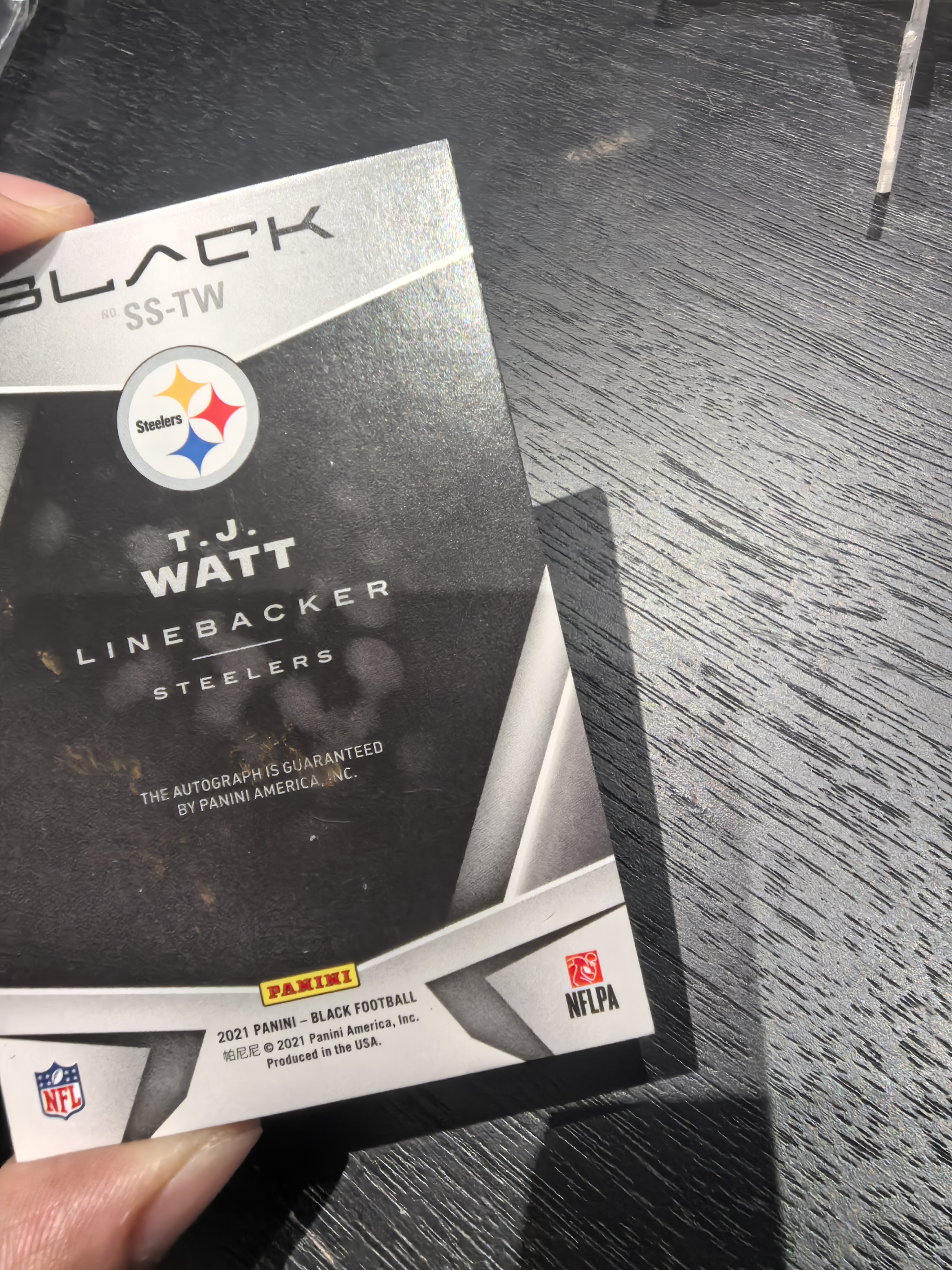 2021 Panini Black T.J. Watt spotlight 聚光灯 tj 瓦特 擒杀后的庆祝经典选图,镜面卡 实卡极为漂亮,历史最佳冲传手之一