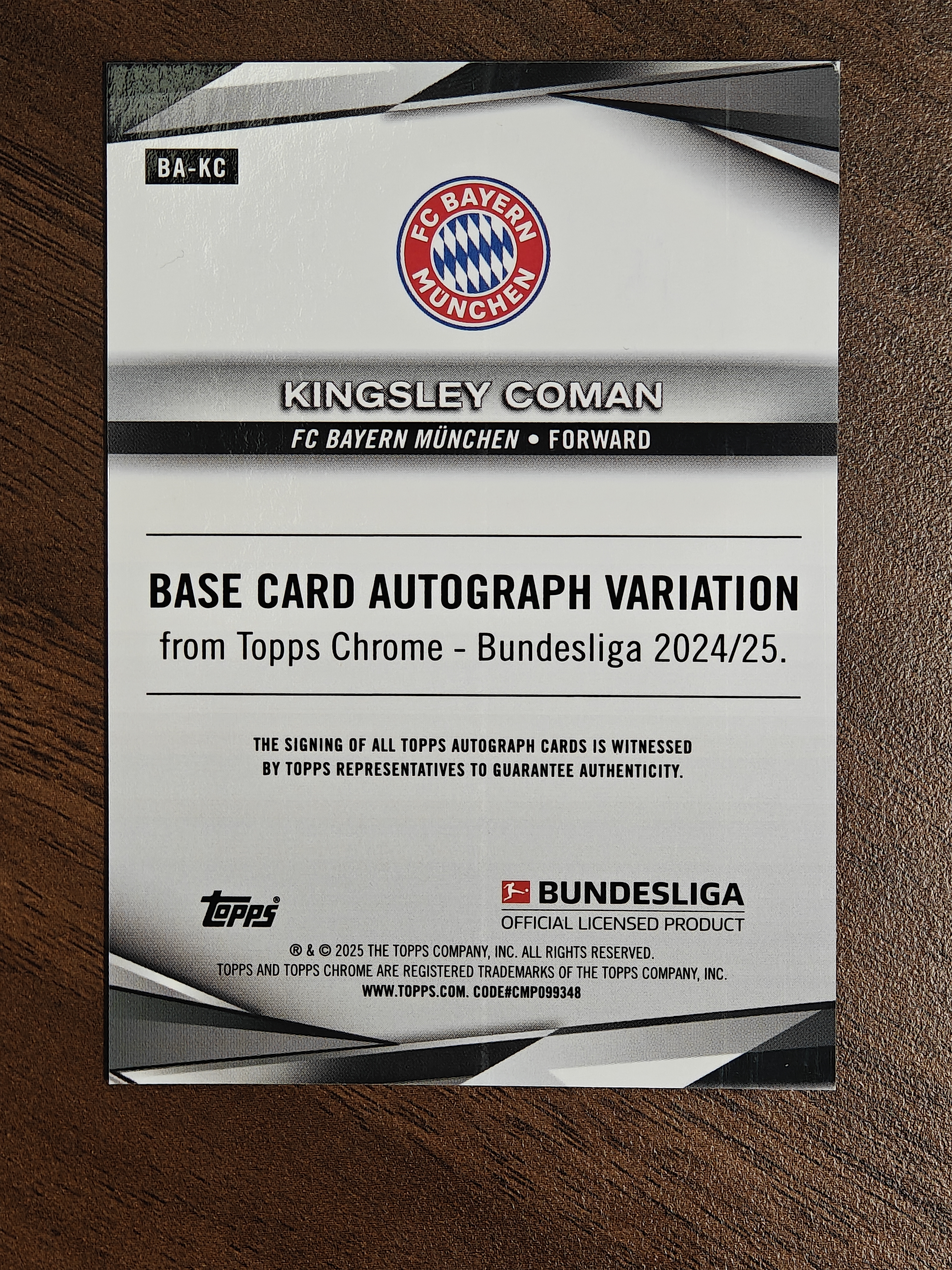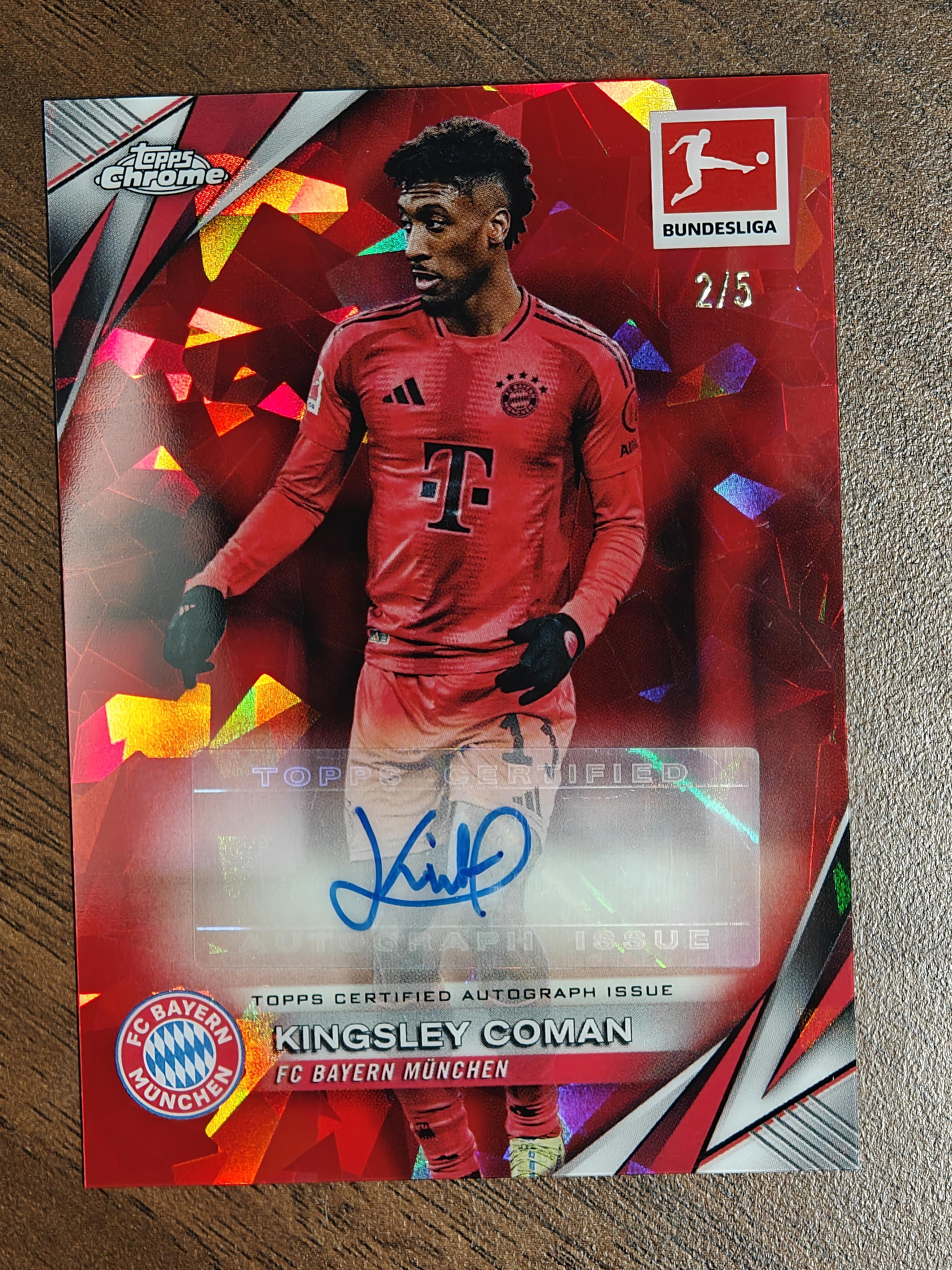 2024-25 Topps Chrome Kingsley Coman 德甲🇩🇪 Bundesliga TC蓝宝石 拜仁 科曼 红碎冰 2/5编 超低编 完美签 仅次于1/1 欧冠功臣最后一年 法国