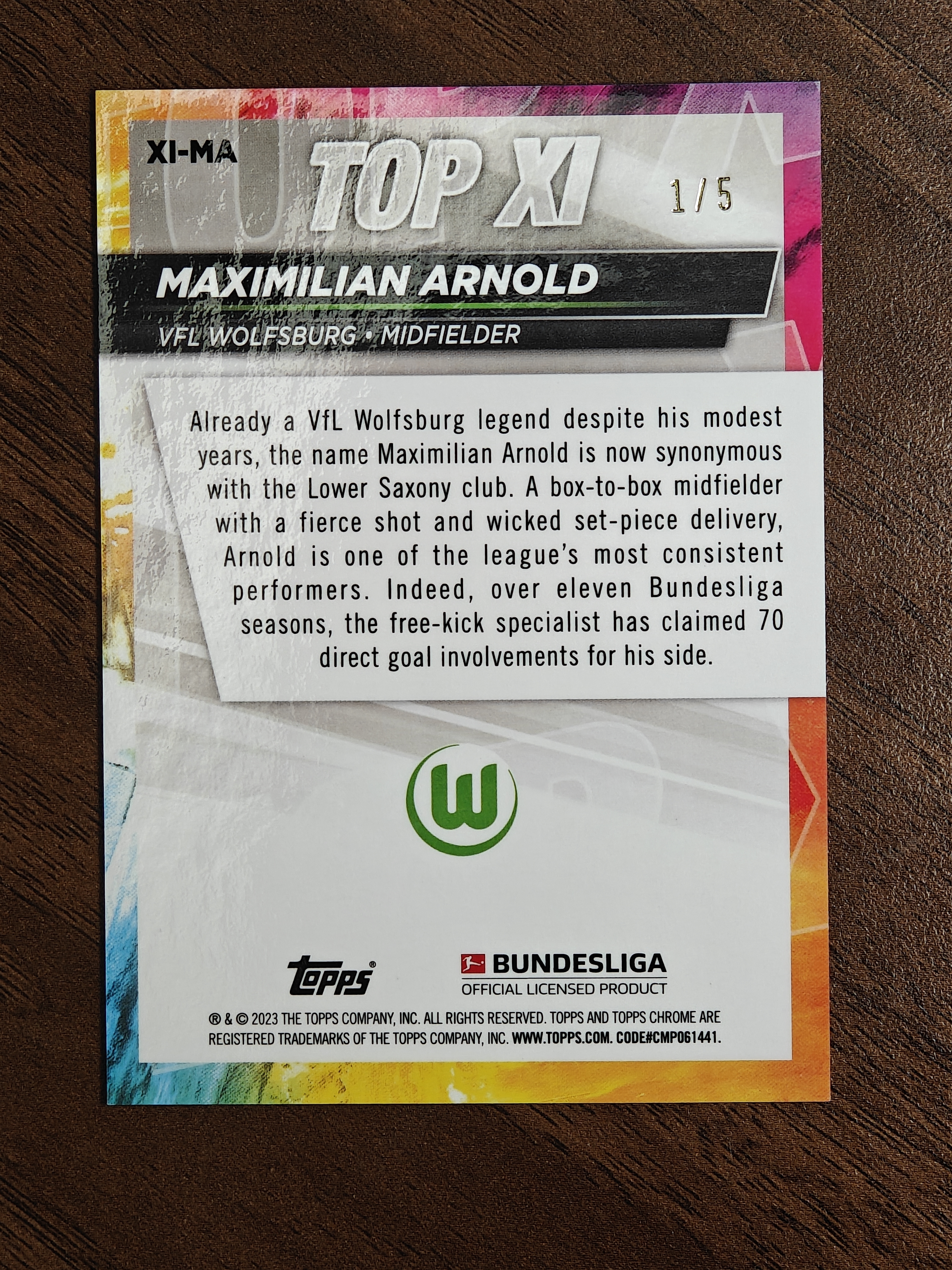 2023 Topps Chrome Maximilian Arnold 德甲 TC 🇩🇪 沃尔夫斯堡 狼王 阿诺德 TOP XI 11人特卡 超低编红折 1/5编 首编 德国 狼堡
