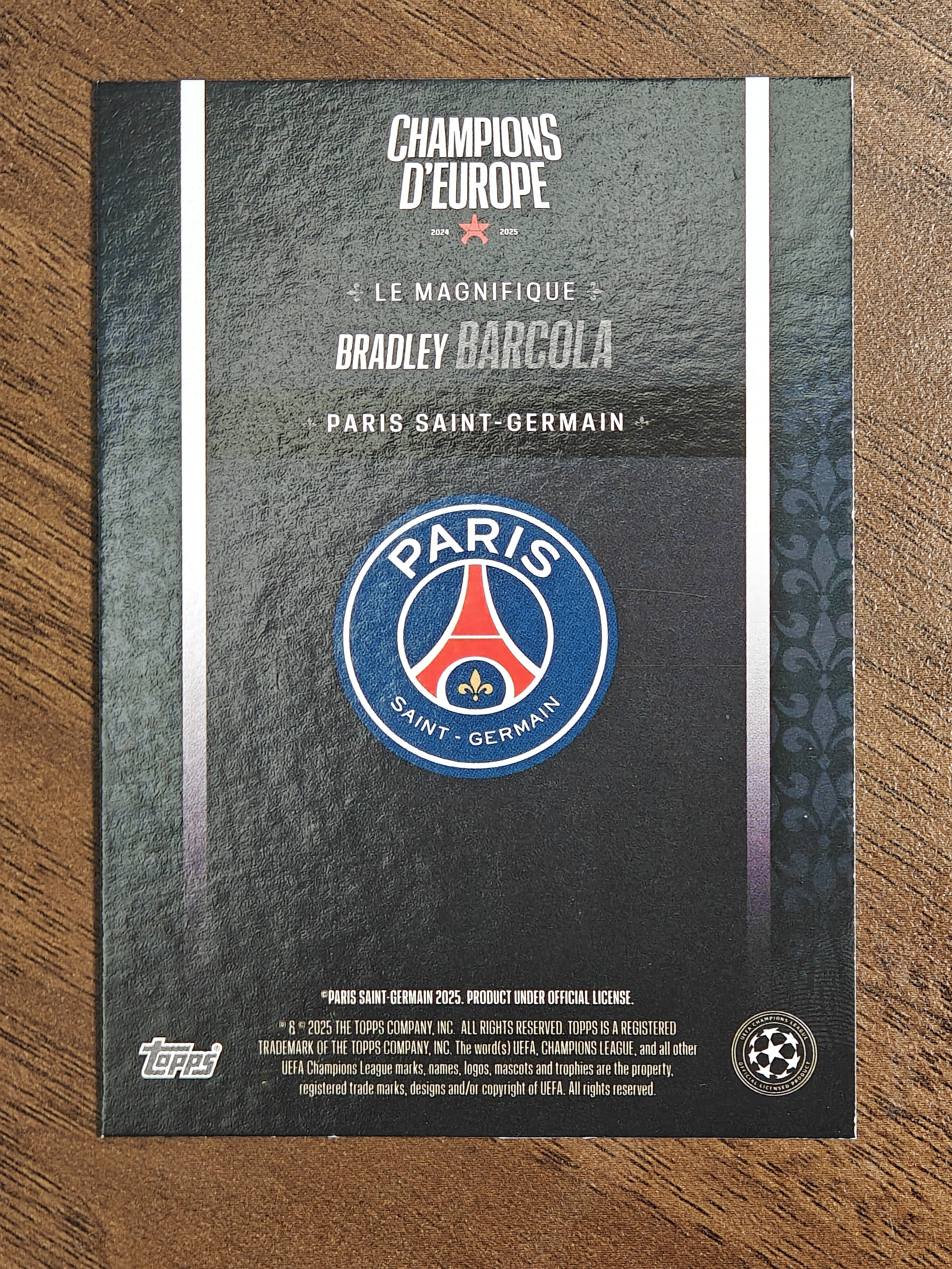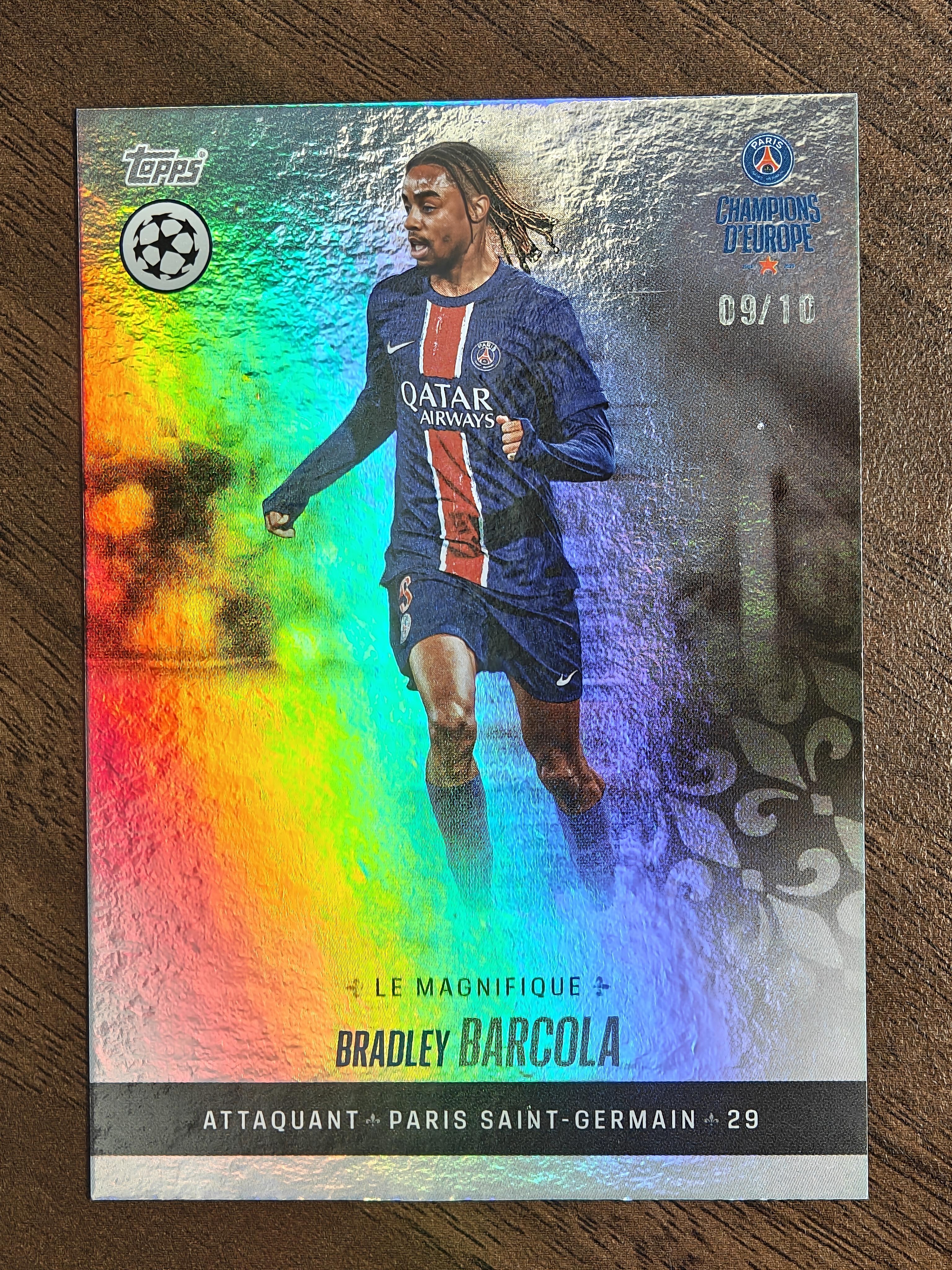 2025 Topps UEFA Champions League Bradley Barcola 巴黎圣日耳曼 欧冠冠军队盒 巴尔科拉 09/10编 黑折 实卡美哭 下一个姆巴佩 法国🇫🇷