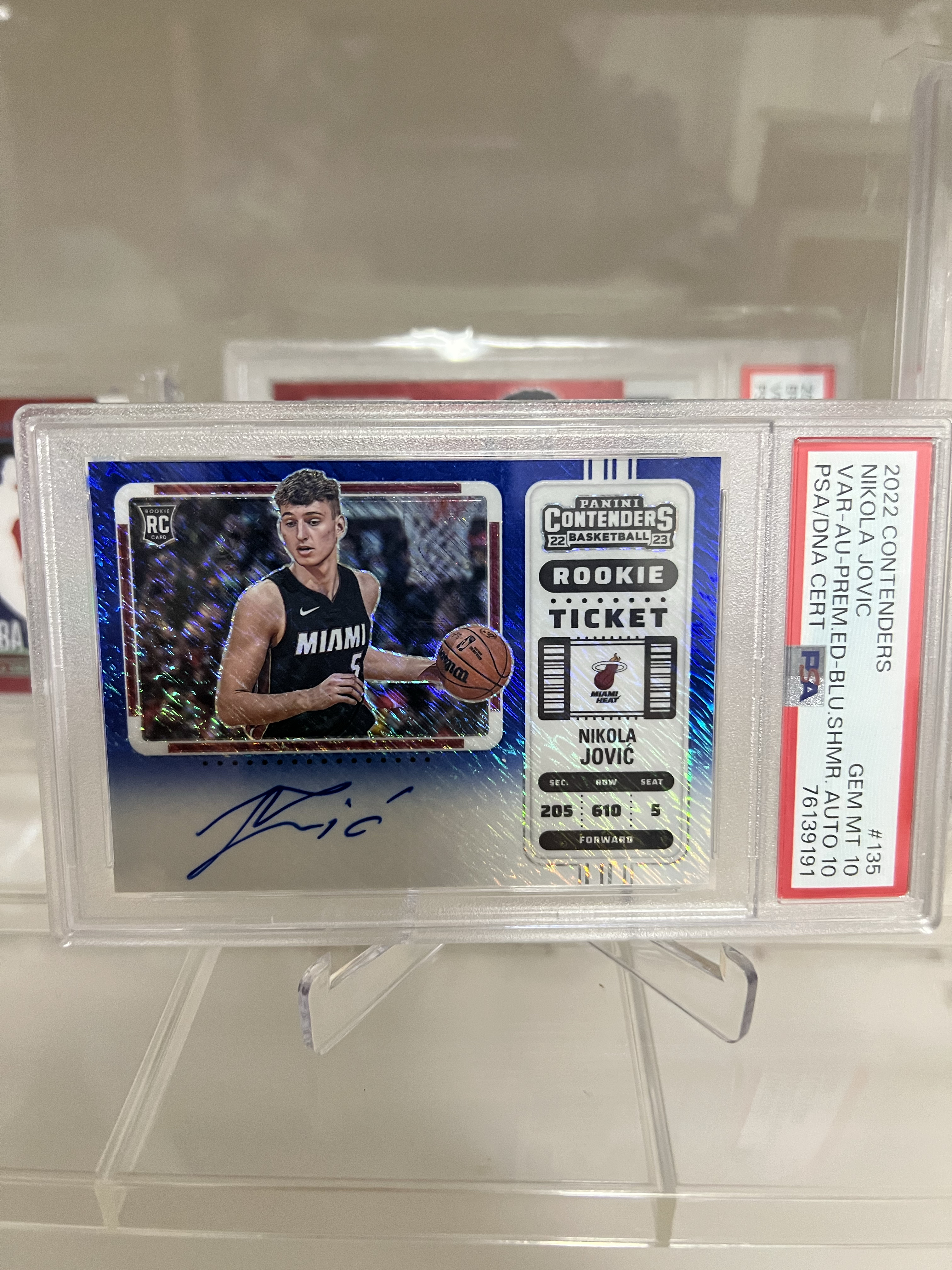 2022-23 Panini Contenders Jovic RC 球票 新秀 热火 约维奇 限量/21编 蓝shimmer折 签字 卡签 变化版 PSA评级10签字10分 双10