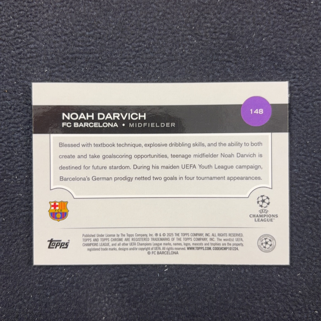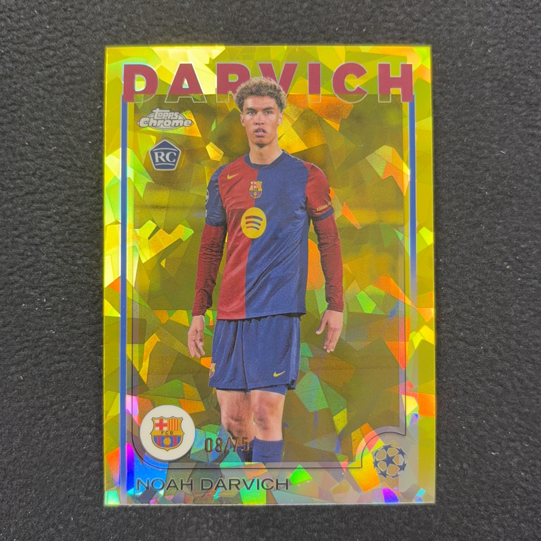 2025 Topps Chrome NOAH DARVICH RC A 欧冠TC 蓝宝石 诺阿 达尔维奇 巴萨 巴塞罗那 75编 金碎冰折 折射 新秀RC