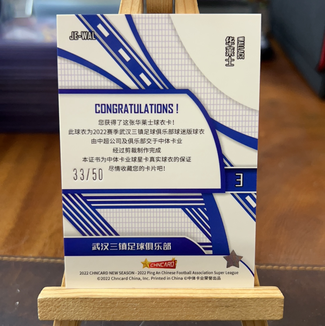 2022 中体卡业 新赛季 Wallace 【耳朵卡社】ZTKY 中体卡业 2022 中超 新赛季系列 物料 球衣卡 低编 33/50编 华莱士 武汉三镇 瑕疵见图 sollent