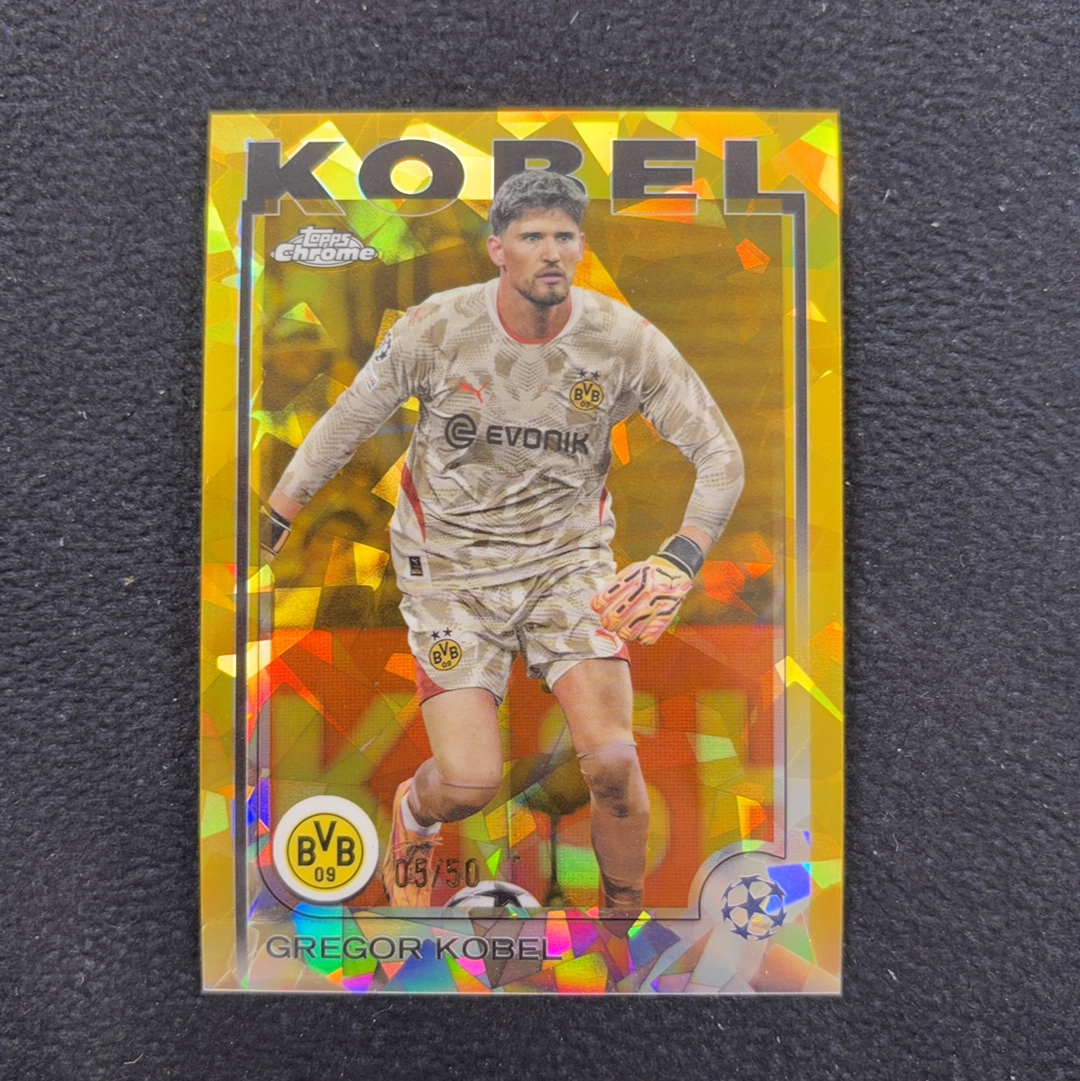 2024 Topps Chrome Gregor Kobel 足球 欧战 Chrome 金碎冰折50编 多特蒙德热门巨星 Gregor Kobel 卡品如图