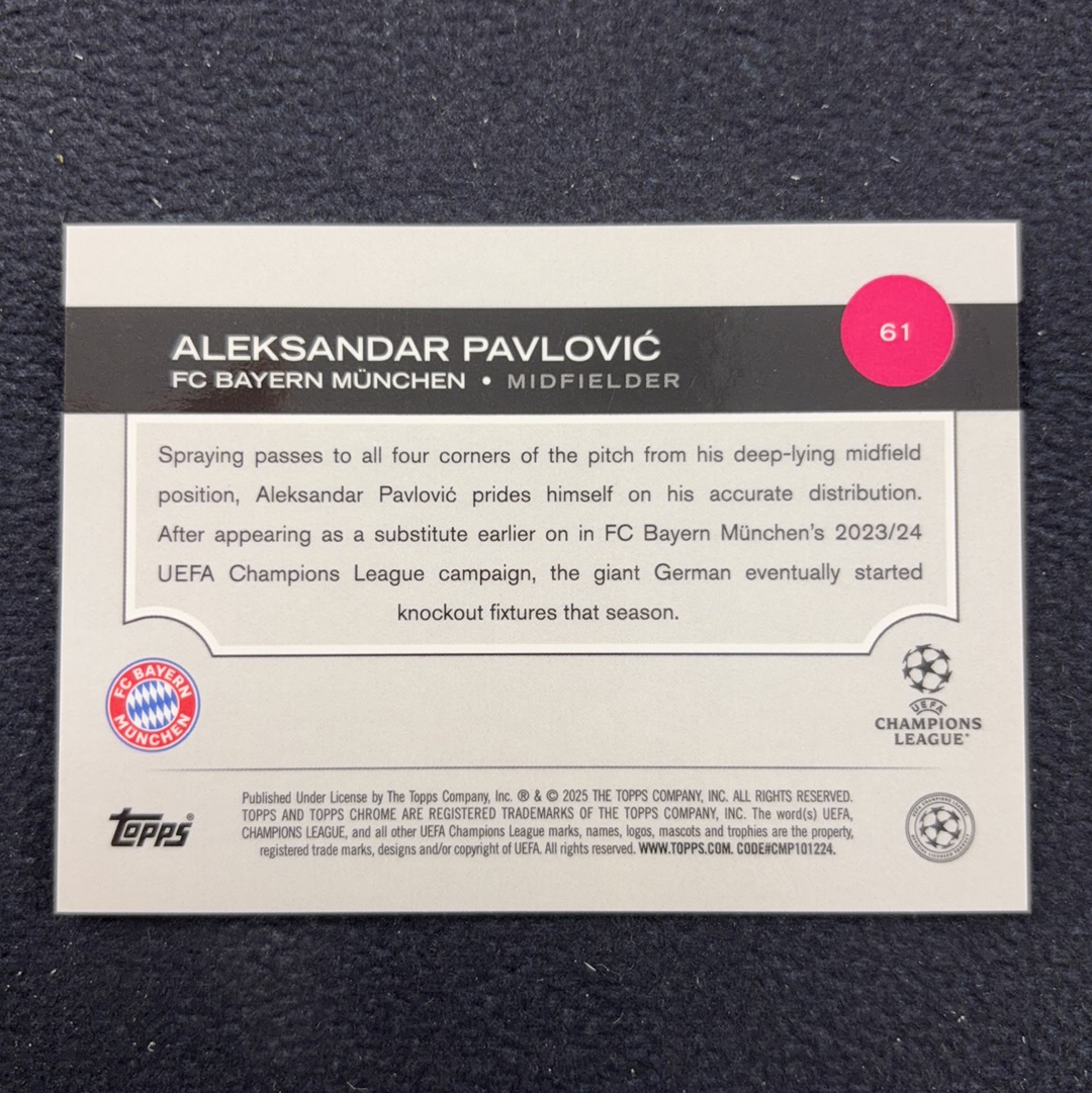 2024 Topps Chrome ALEKSANDAR PAVLOVIC 欧冠TC蓝宝石 德国 拜仁慕尼黑 帕夫洛维奇 50编 金碎冰折