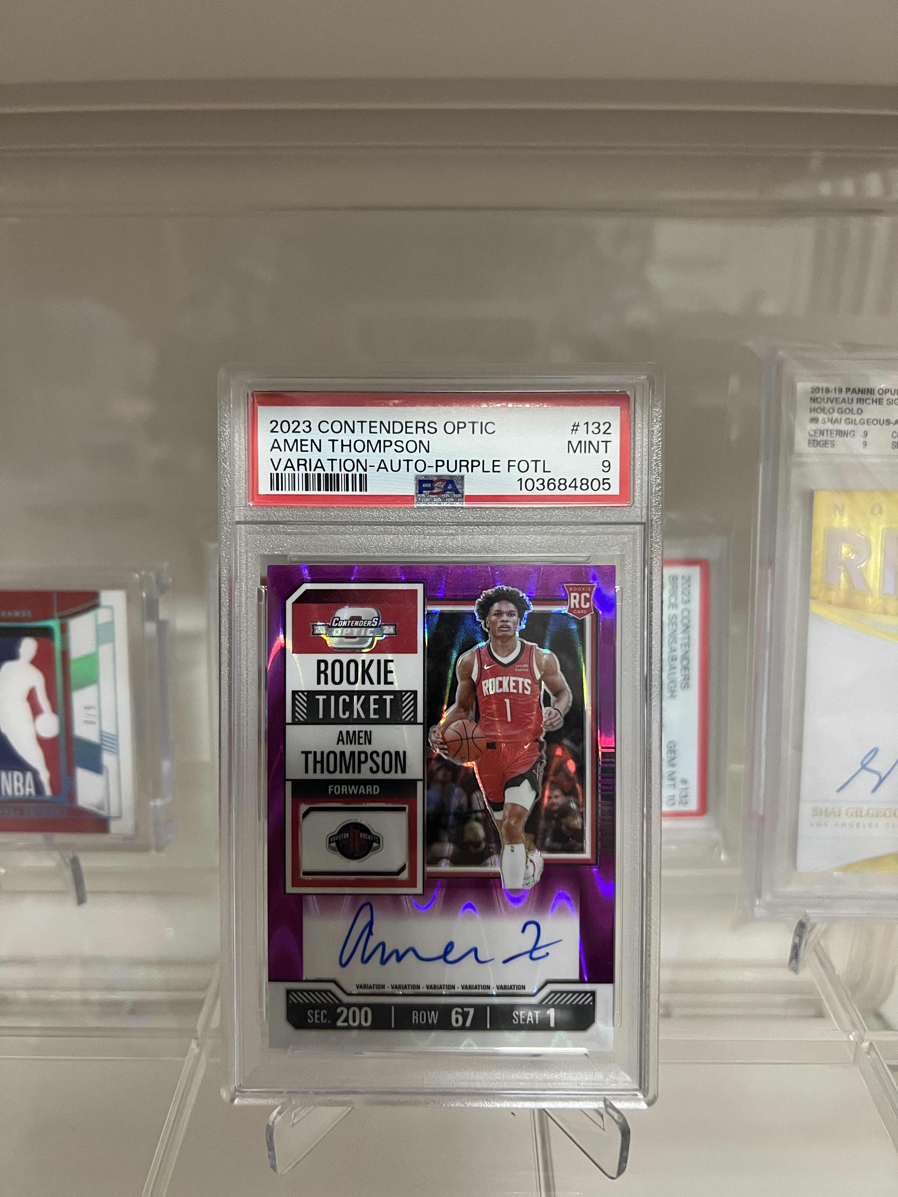 23 24 Contenders 球票OP RC 新秀 阿门 汤普森 签字 卡签 紫熔岩折 折射 变化版 限量/18编 低编 psa评级9签字很好可博10