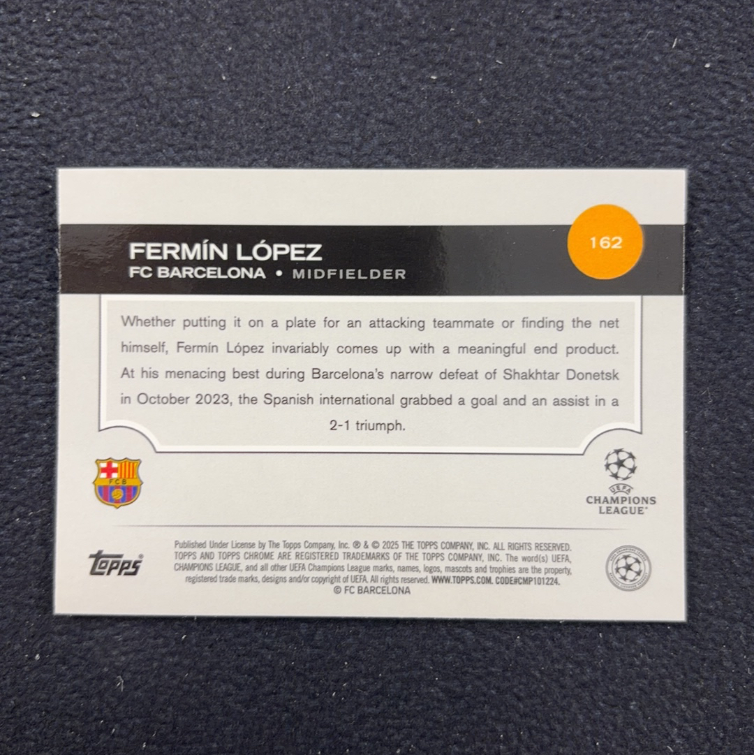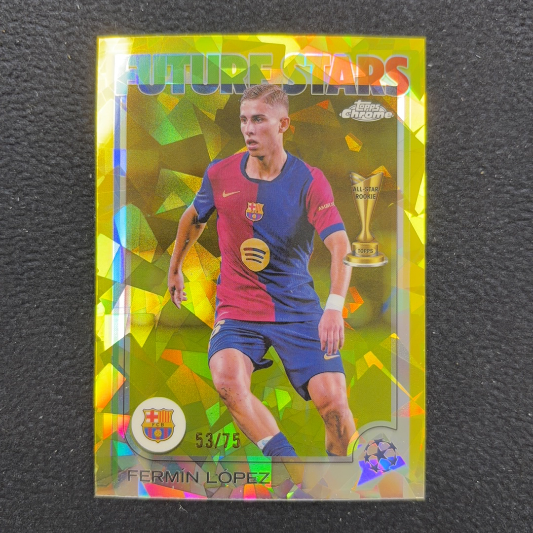 2024-25 Topps Chrome Fermín López 蓝宝石 巴萨 巴塞罗那 费尔明 洛佩斯 75 黄碎冰折(电击小子)