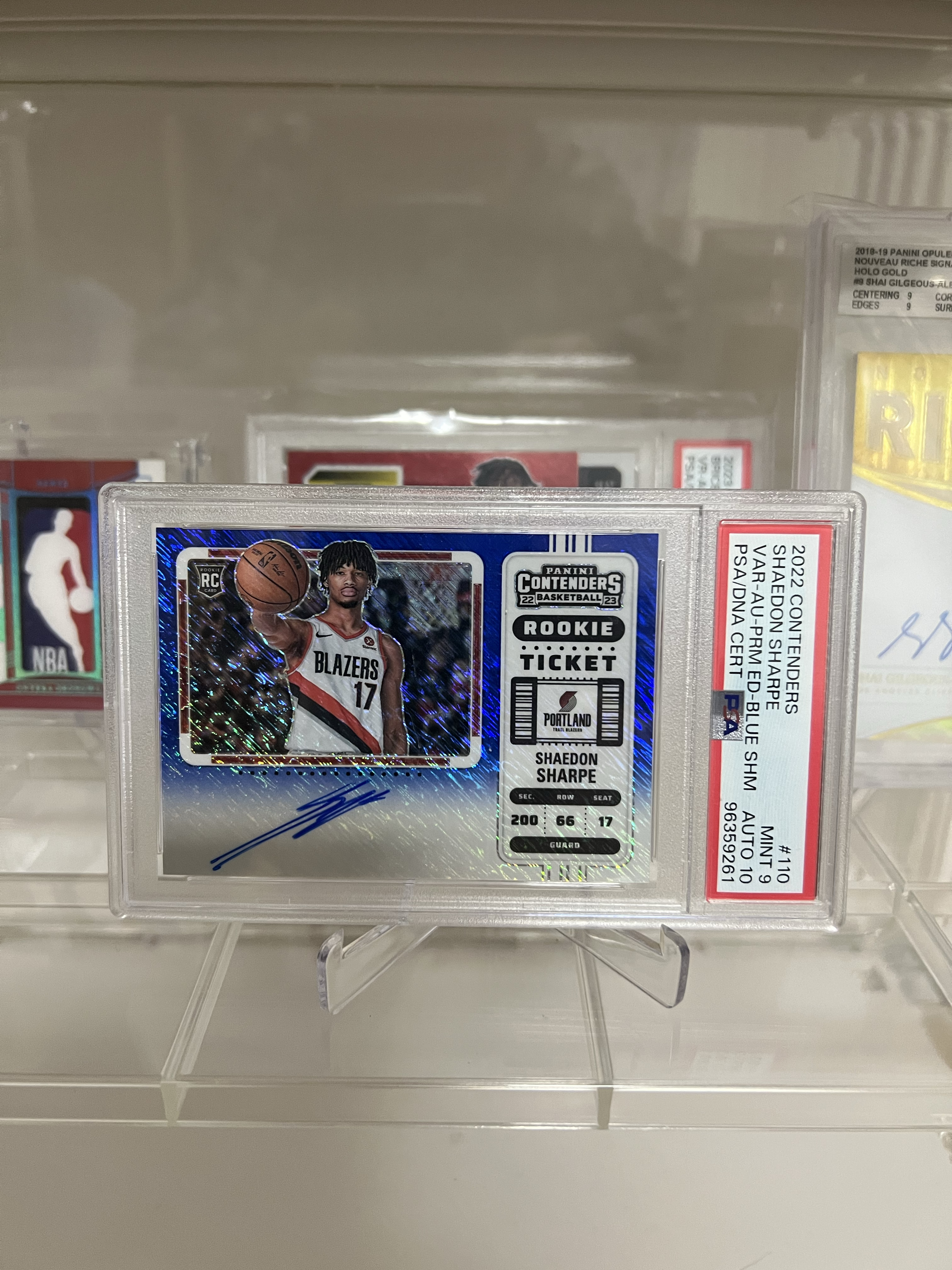 22 23 Panini Contenders 球票 新秀RC 谢登 夏普 限量17/21编 同背号 1/1 签字 卡签 蓝shimmer折 蓝折 PSA评级9签字10