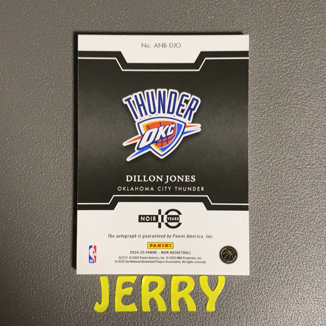 2024-25 Panini Noir Dillon Jones RC 诺尔 10周年 雷霆 狄龙 琼斯 新秀 01/10编 首编 签字 蓝宝石平行 黑白签名 卡签 卡品如图【雄鹰】