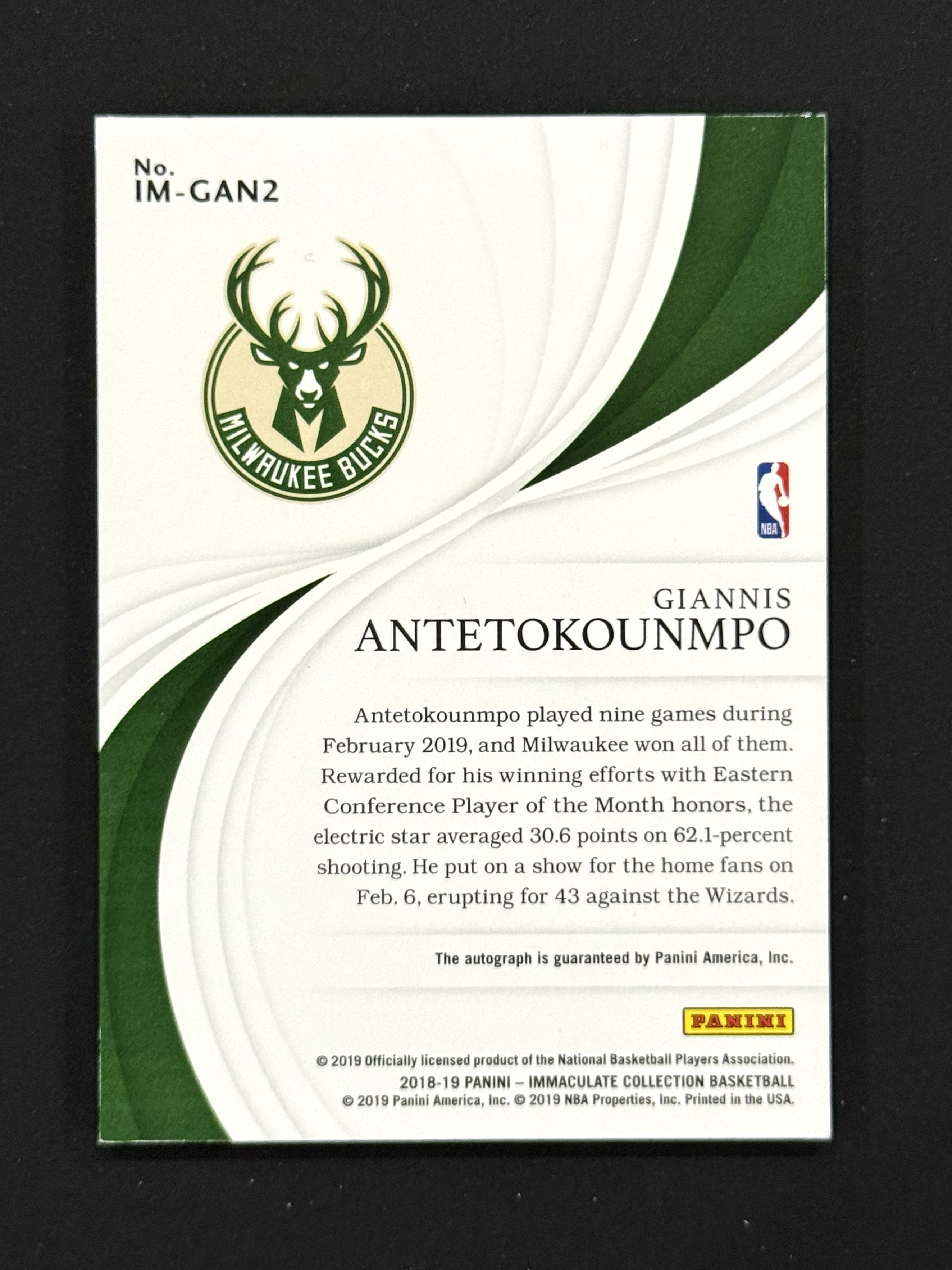 2018-19 Panini Immaculate Giannis Antetokounmpo 爱咪咪 雄鹿 扬尼斯 阿德托昆博 字母哥 时刻签 镜面 卡签 签字 49编 卡品如图 专收必备