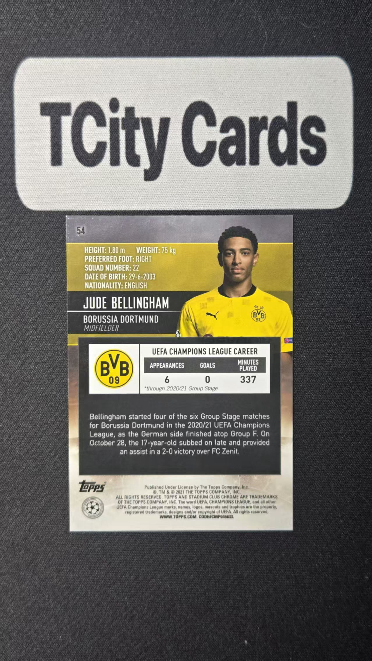 2021  Stadium Club Chrome Jude Bellingham RC 竞技场 贝林厄姆 base 多特蒙德 皇马 新秀 dxc