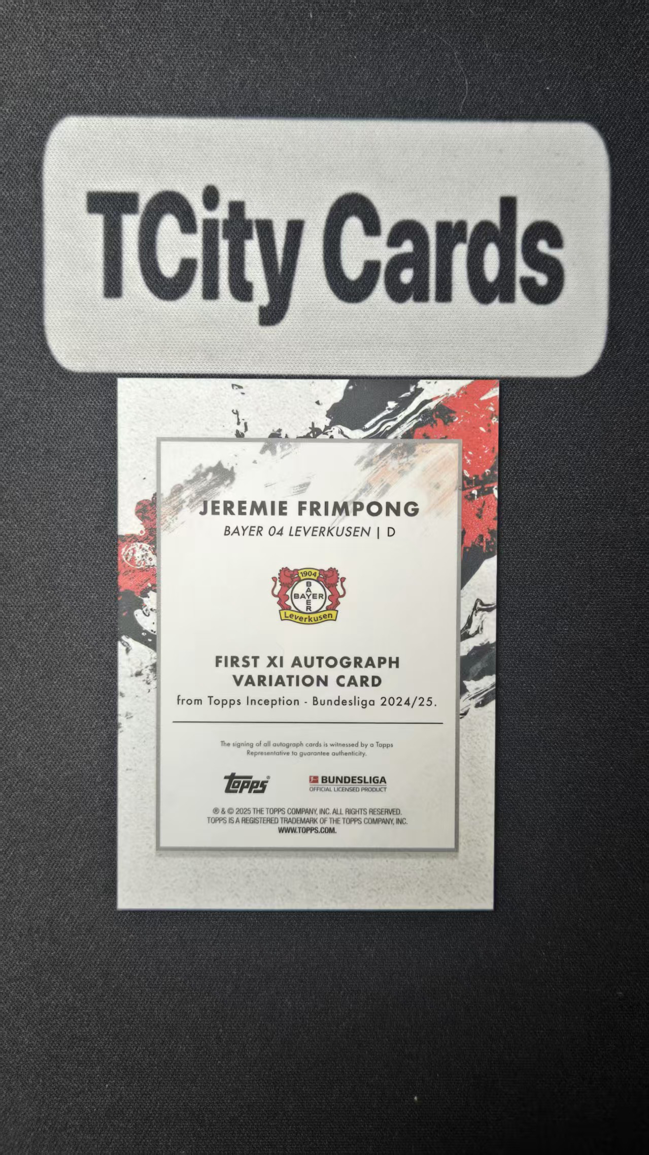 2024-25 Topps Bundesliga Inception Jeremie Frimpong 杰里米 弗林蓬 勒沃库森 利物浦 荷兰 99编 签字 签名 蓝平行 元年 德甲 dxc