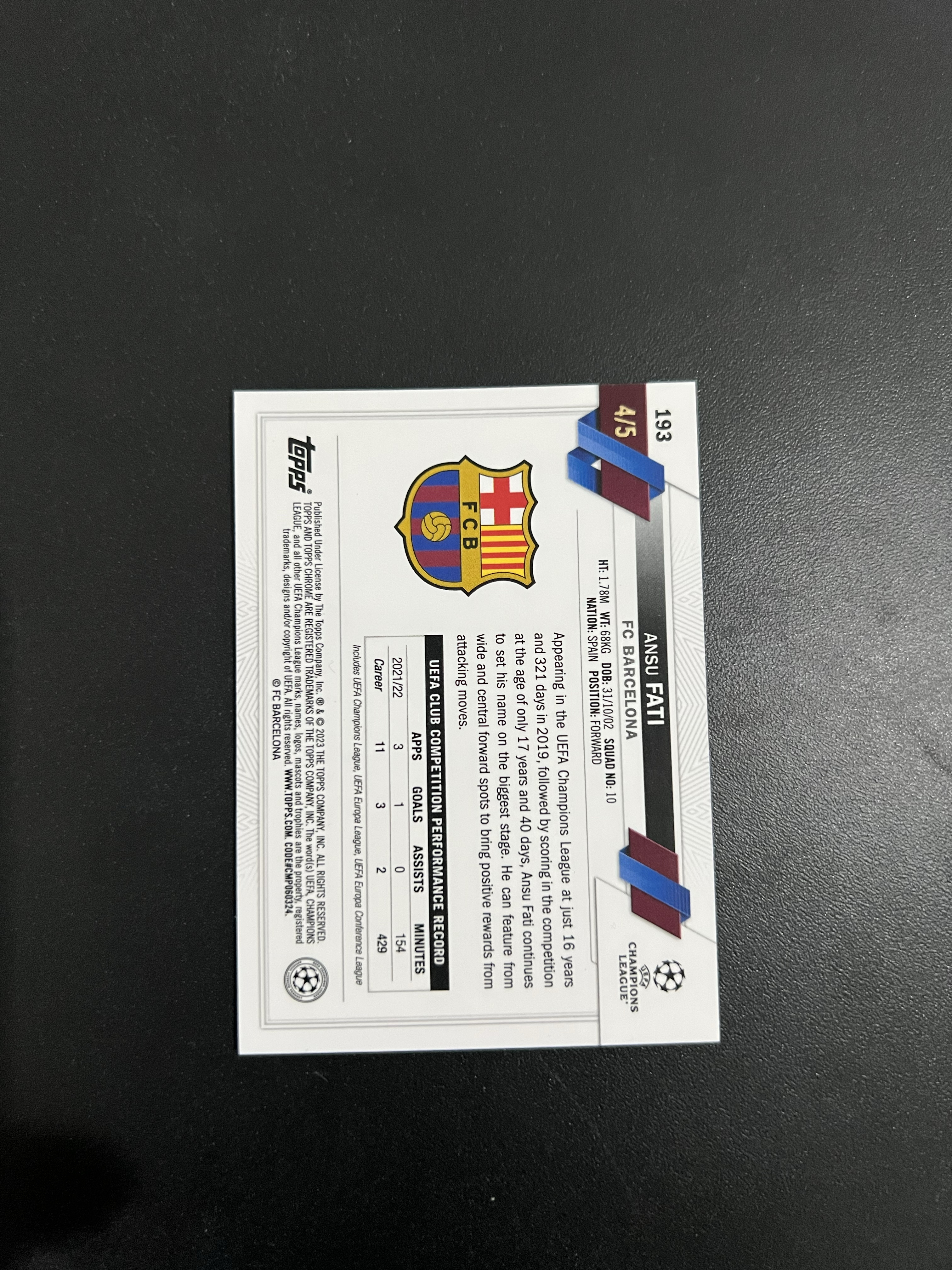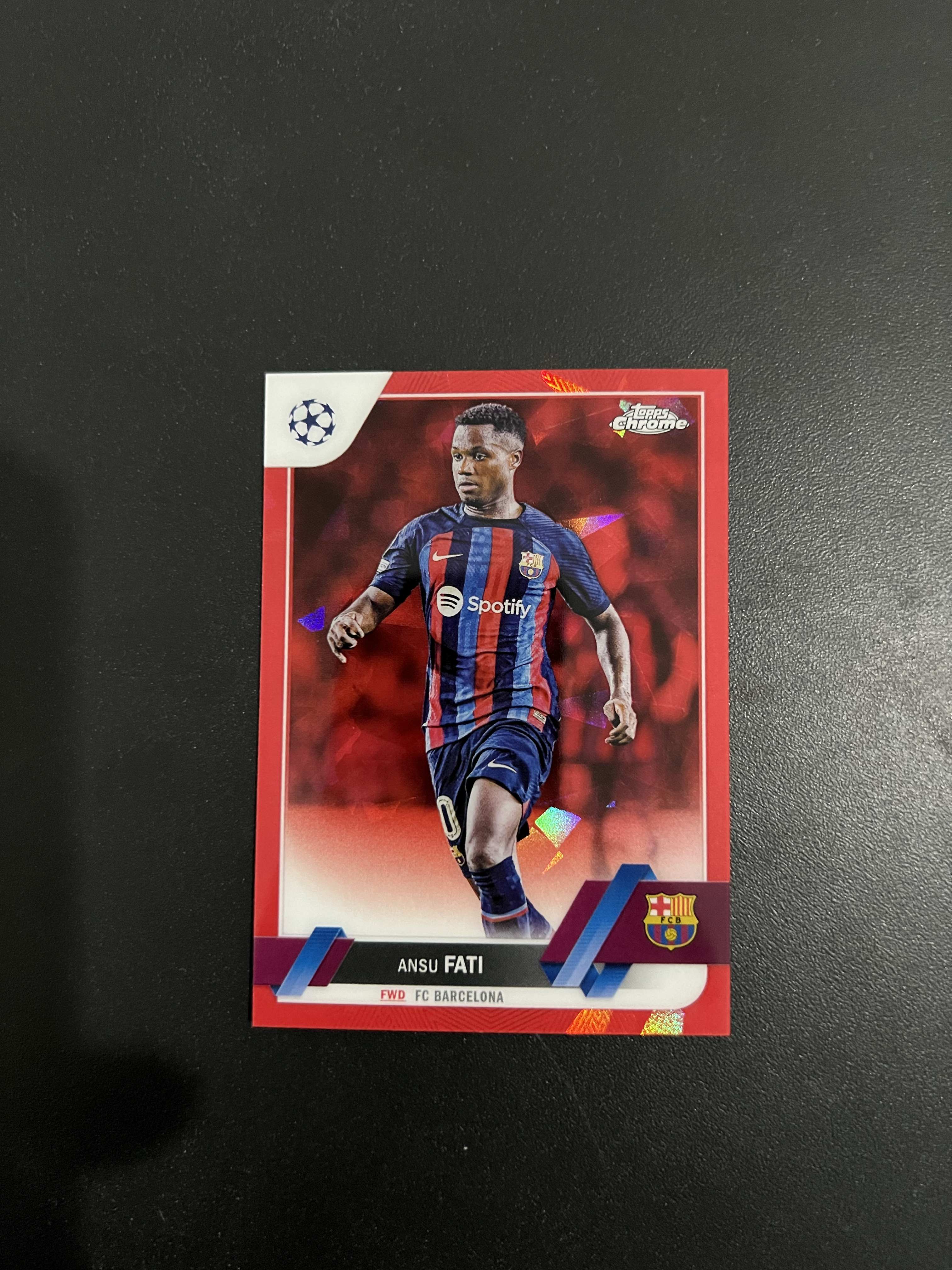 2023-24 Topps Chrome Ansu Fati 欧冠 TC 蓝宝石 巴萨 巴塞罗那 安苏 法蒂 红碎冰折 4/5编 低编 摩纳哥 状态回勇 卡品如图