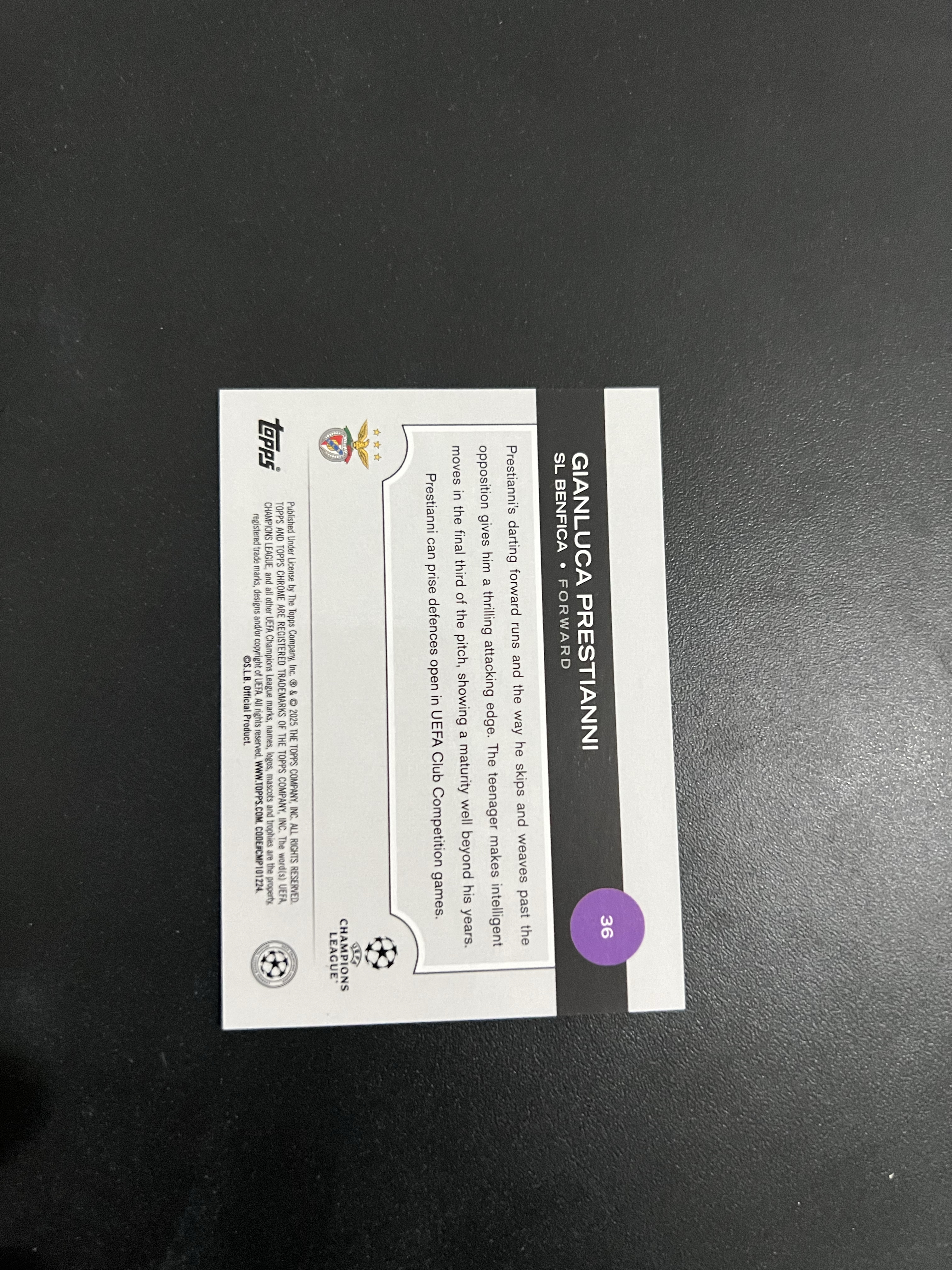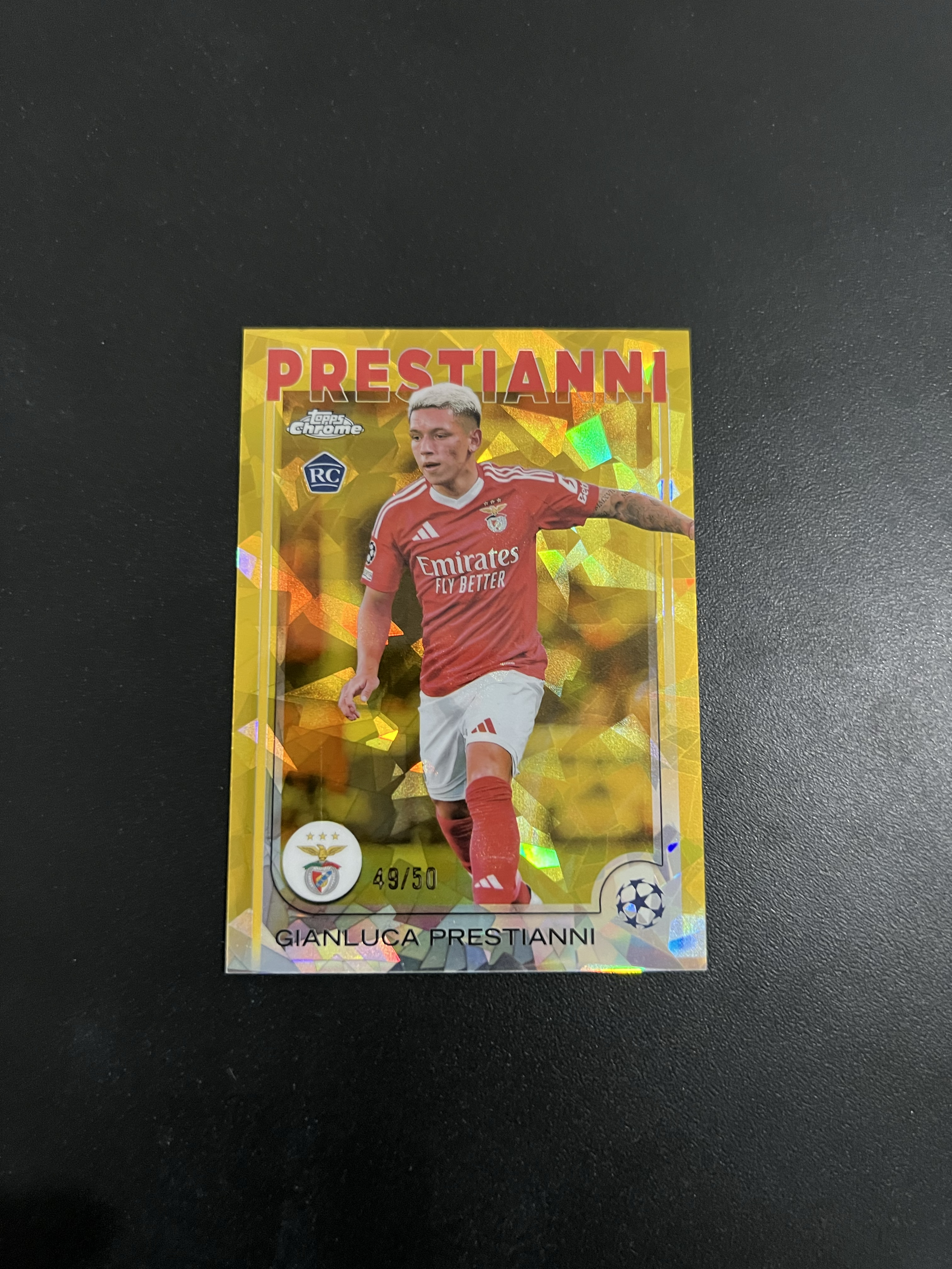 2024-25 Topps Chrome Gianluca Prestianni RC 蓝宝石 普雷斯蒂安尼 本菲卡 欧冠 RC新秀 49/50编 金碎冰折 卡品如图