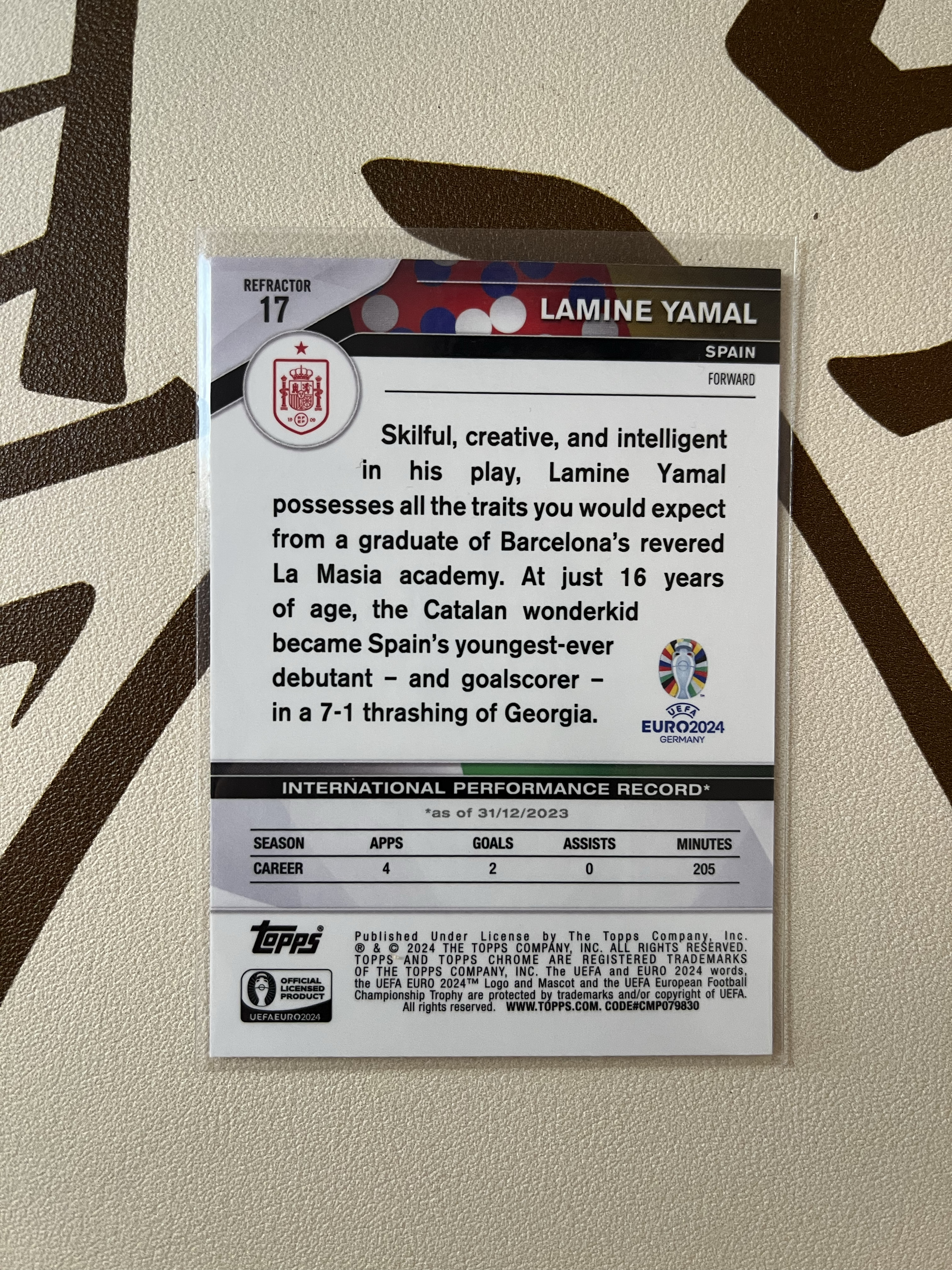 2024 Topps Chrome Lamine Yamal 亚马尔 西班牙 欧洲杯 Debut 首秀特卡 银折
