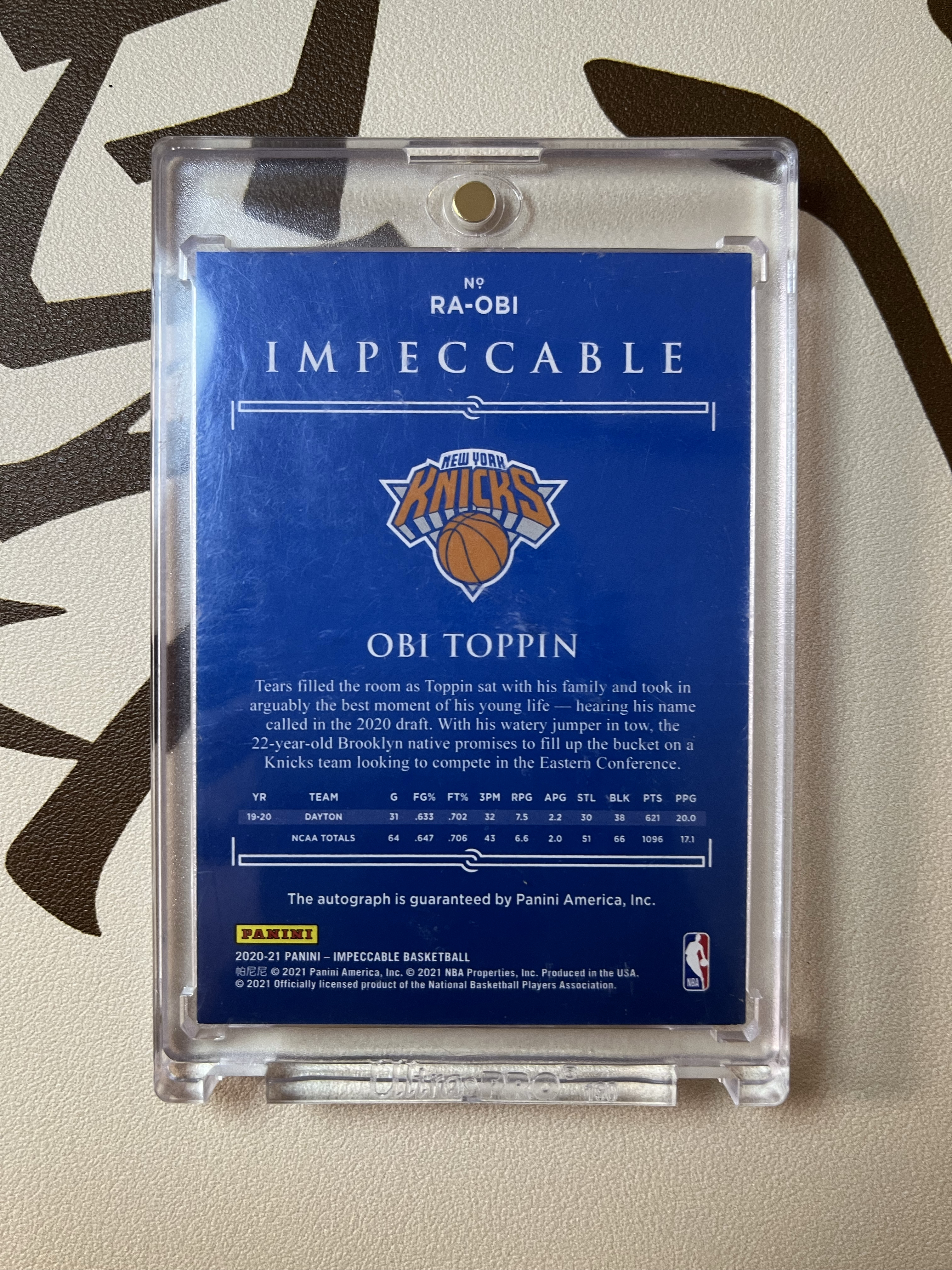 2020-21 Panini Impeccable Obi Toppin RC 托平 小真金 中国红 卡签 rc 66/88编 吉利脱贫带回家
