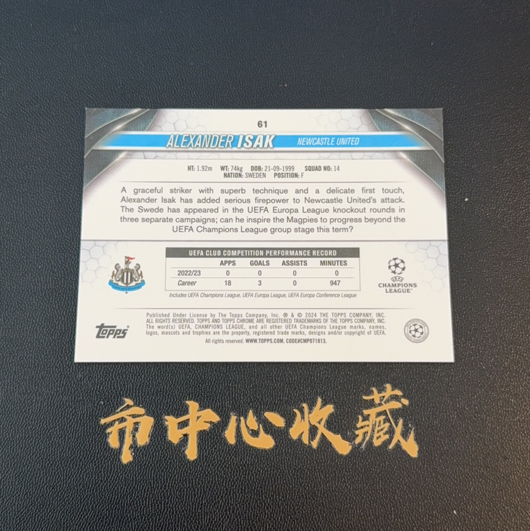 【市中心收藏】2023-24 Topps Chrome Alexander Isak 伊萨克 纽卡斯尔联 利物浦 欧冠TC 10/10编 尾编 黑折 低编 换出W