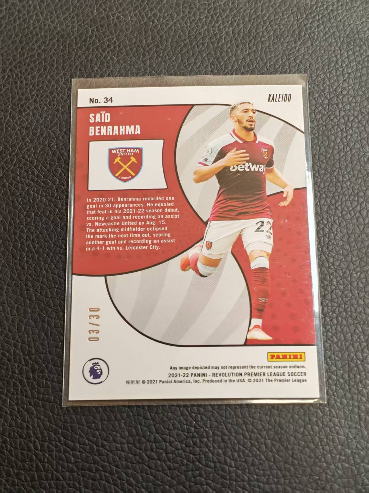 ![[萝卜拍卖]21-22 英超革命 Said Benrahma 西汉姆联 本拉赫马 Kaleido万花筒折射 03/30编 老卡默认微瑕 出价视为接受 实卡超美 收藏佳品](https://images.cardhobby.com/92dd532a89844e30ee06209135c5a7451761287928212.jpg)