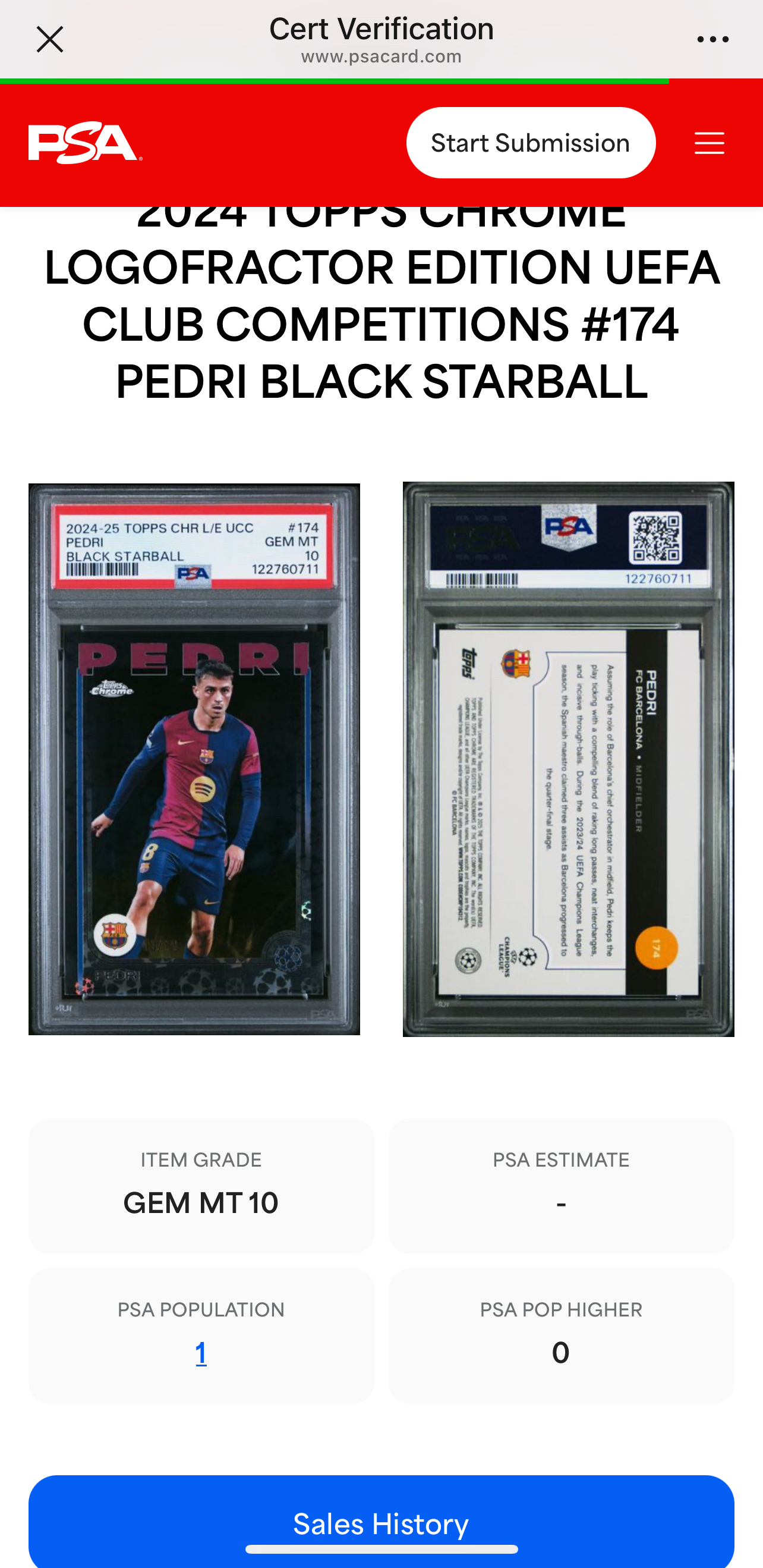 2024-25 Topps Chrome Pedri 佩德里 佩刀 10编 黑折 球折 折射 psa10分 评级卡 pop1 仅此一张 现役最强中场 年轻人未来可期 巴萨 西班牙 亚马尔 梅西 队友