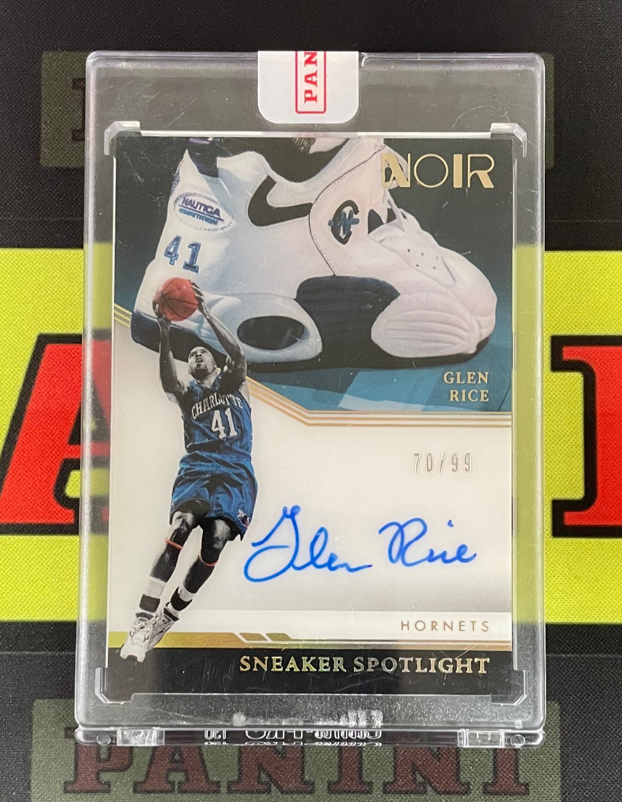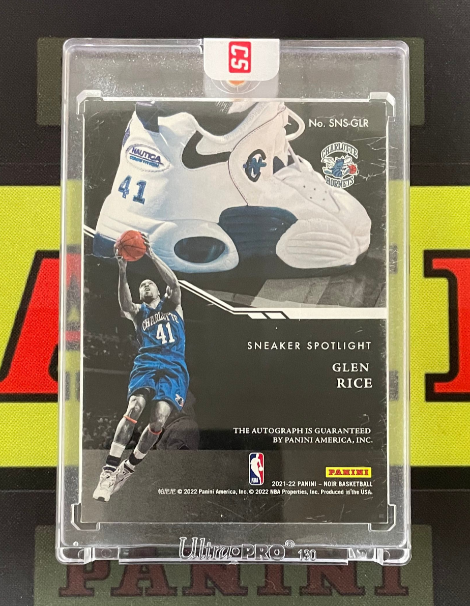 【算盘拍卖】2021-22 Panini Noir Glen Rice 夏洛特黄蜂名宿 格伦 莱斯 诺尔系列 70/99编 Sneaker Spotlight 鞋灯签字 聚光灯签 镜面卡签 墨迹超蓝 原封砖 专收凑套必备(DG)