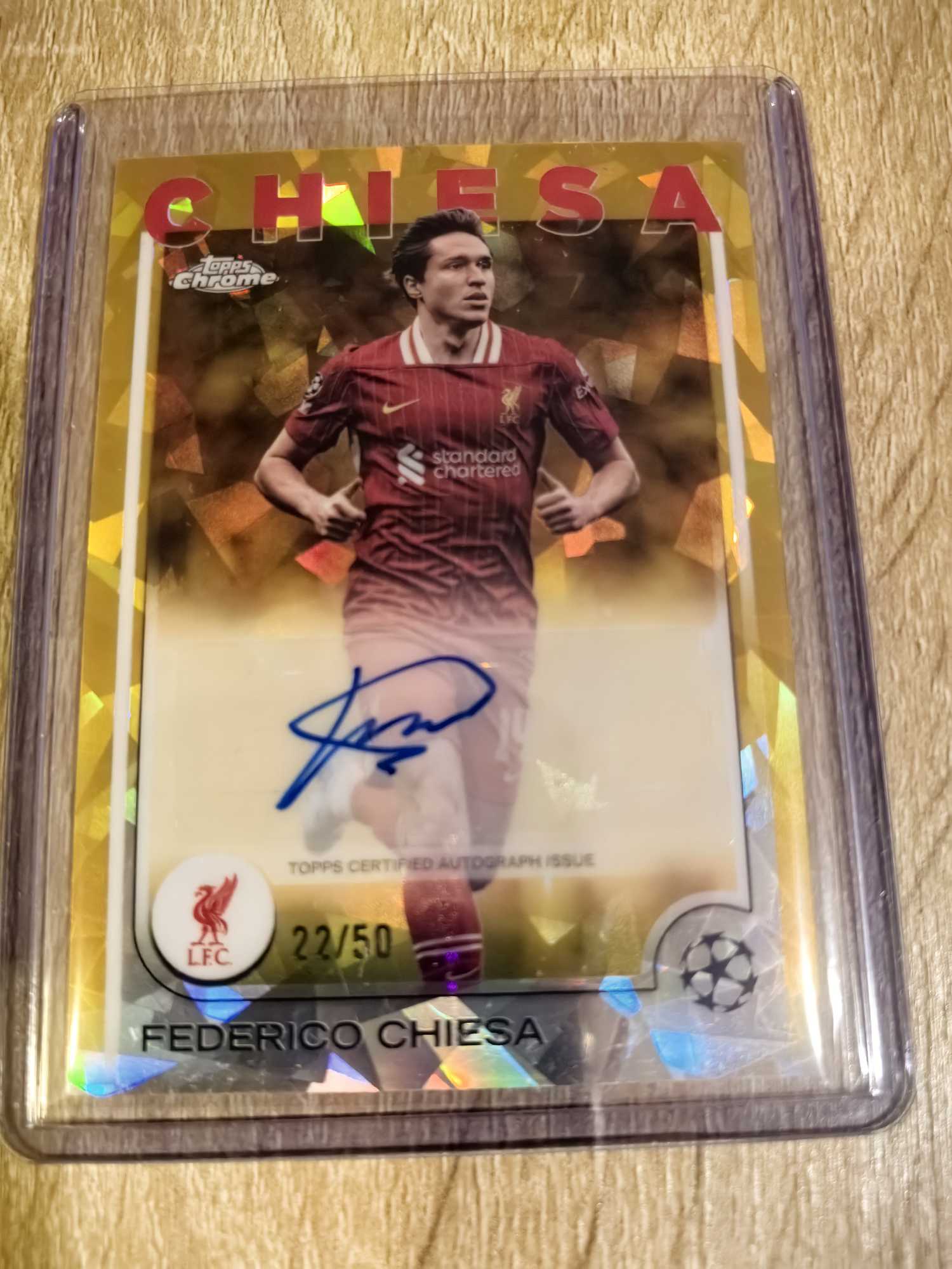 2024-25 Topps Chrome Federico Chiesa 欧战欧冠tc 基耶萨 /50编 签字 完美签 利物浦 蓝宝石 金碎冰