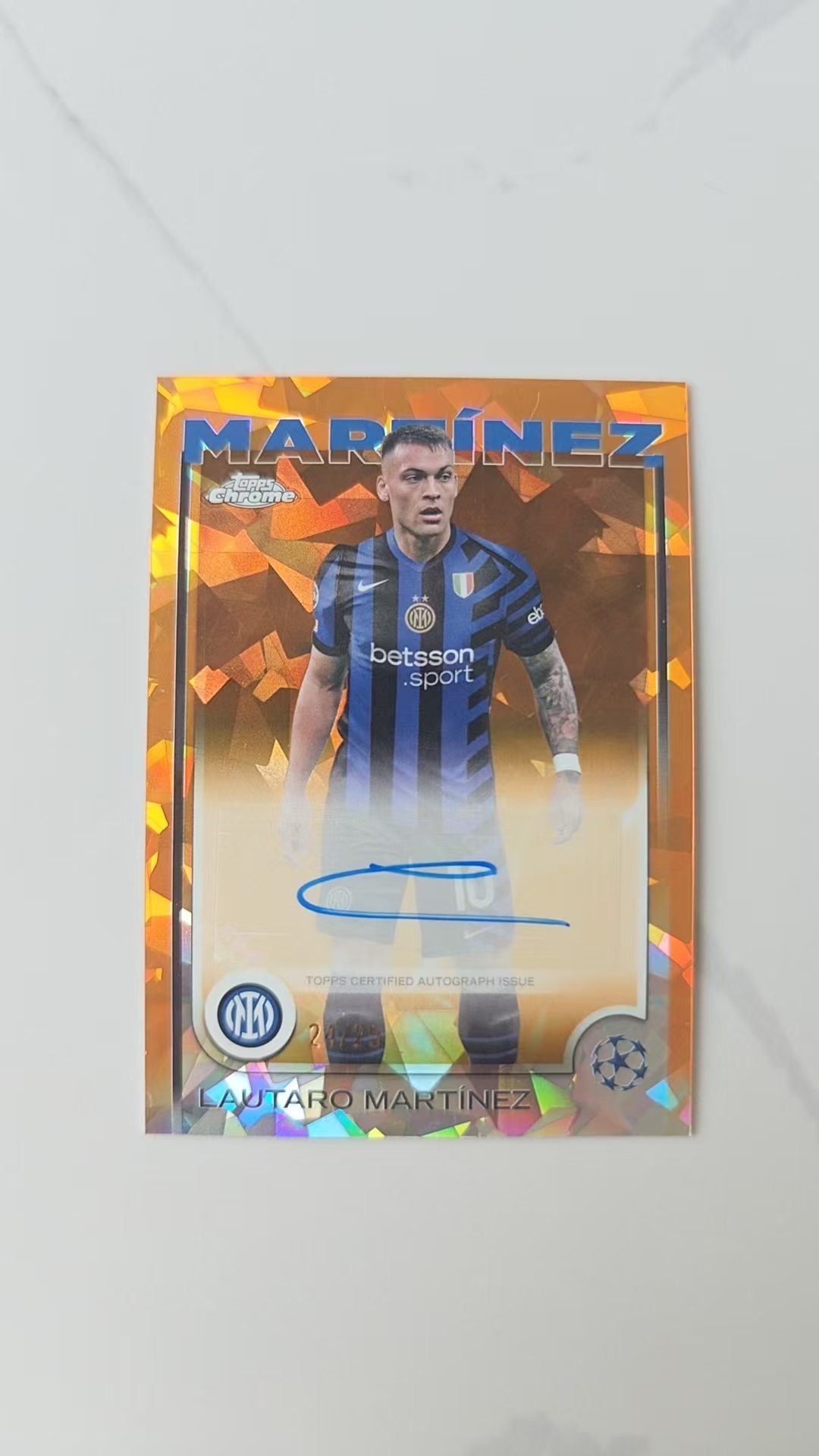 2024-25 Topps Chrome Lautaro Martinez 劳塔罗·马丁内斯 国米 阿根廷 带编签字 24/25 橙折 橙碎冰折 墨迹完美 欧战TC蓝宝石 欧战蓝宝石TC