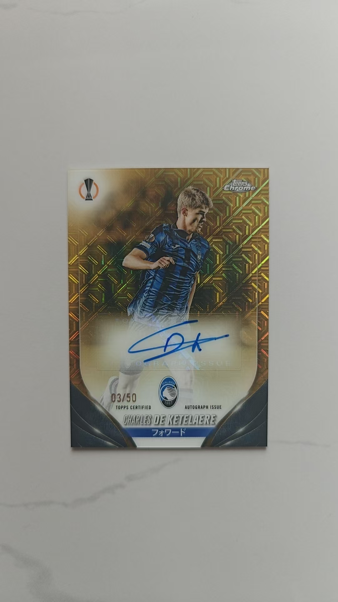 2023-24 Topps Chrome Charles De Ketelaere 夏尔·德凯特拉雷 亚特兰大 比利时 CDK 带编签字 03/50 金Mojo折 金迷宫折 欧战TC 樱花版 日本限定