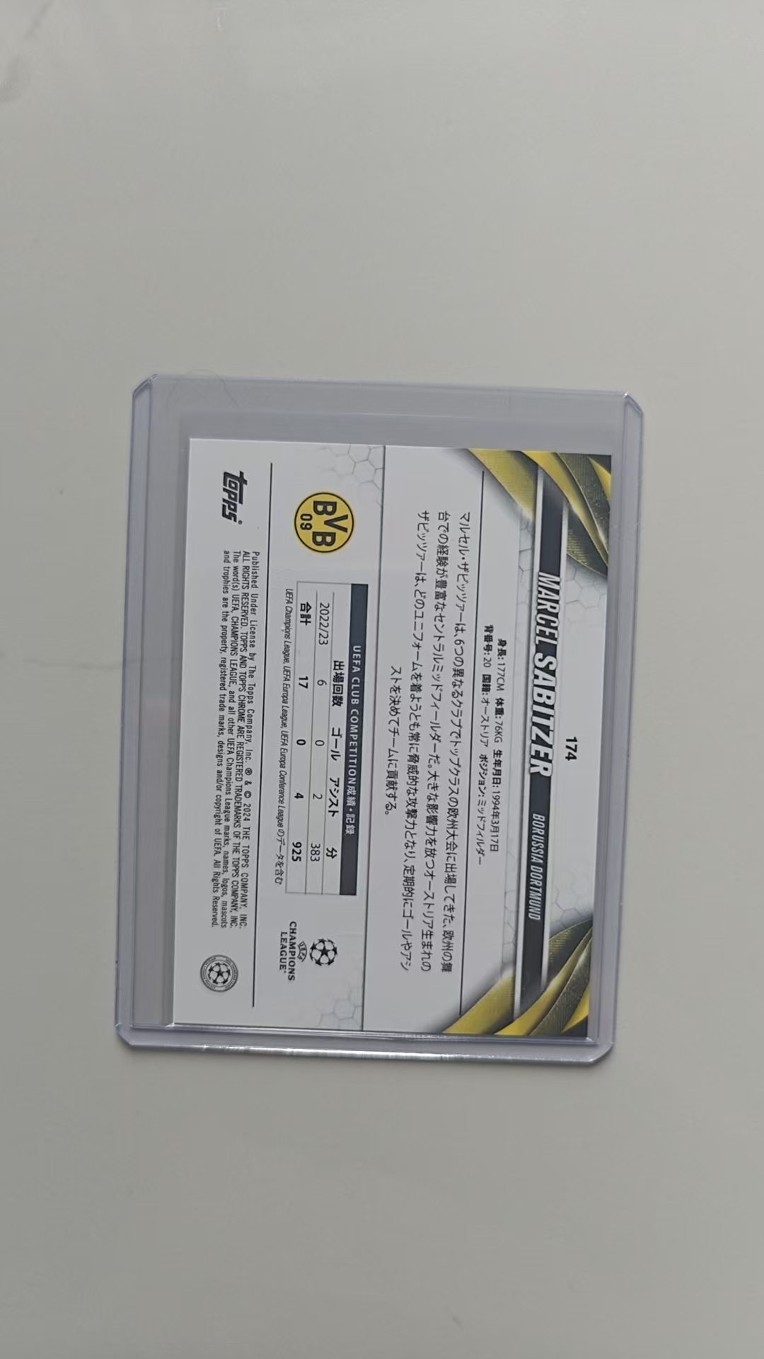 2023-24 Topps Chrome Marcel Sabitzer 马塞尔·萨比策 多特蒙德 奥地利 AABB编 22/99 绿Mojo折 绿迷宫折 欧战 樱花版 日本限定 日版樱花