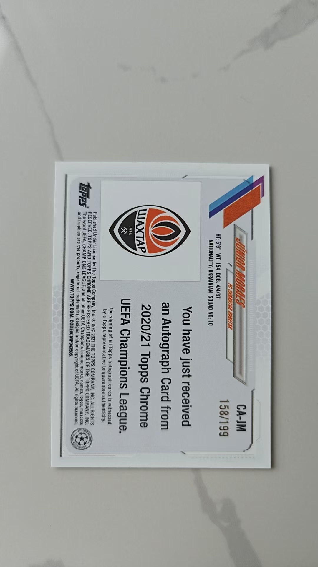2020-21 Topps Chrome Junior Moraes 儒尼奥尔·莫赖斯 顿涅茨克矿工 乌克兰 带编签字 158/199 青绿折 青折 欧战TC正系列 返场
