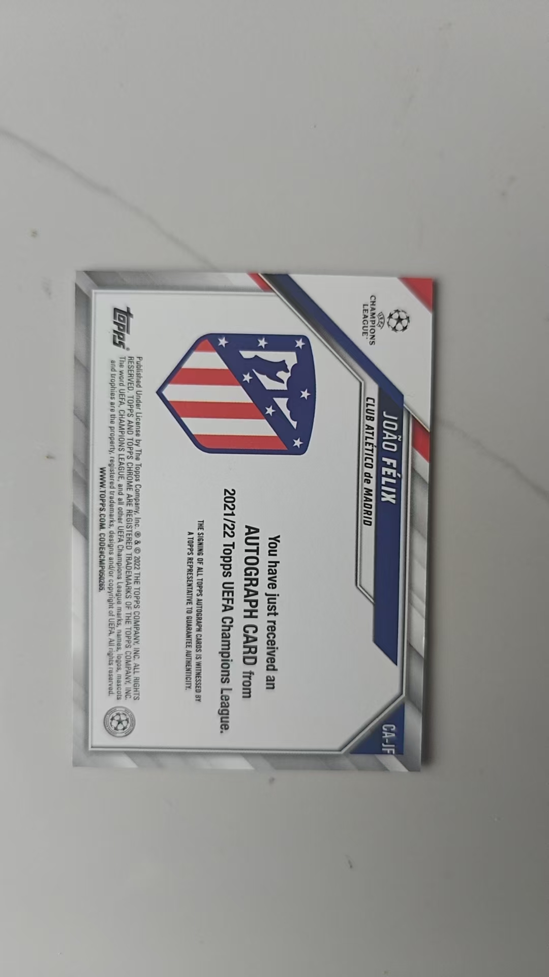 2021-22 Topps Chrome Joao Felix 若昂·菲利克斯 马竞 葡萄牙 小菲 签字 墨迹完美 欧战TC正系列 利亚德胜利 C罗队友 C罗接班人