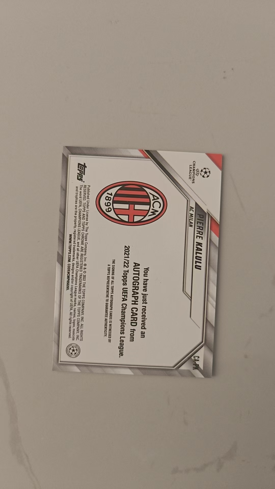 2021-22 Topps Chrome Pierre Kalulu RC 皮诶尔·卡卢卢 AC米兰 法国 新秀 签字 墨迹完美 欧战TC正系列 尤文图斯