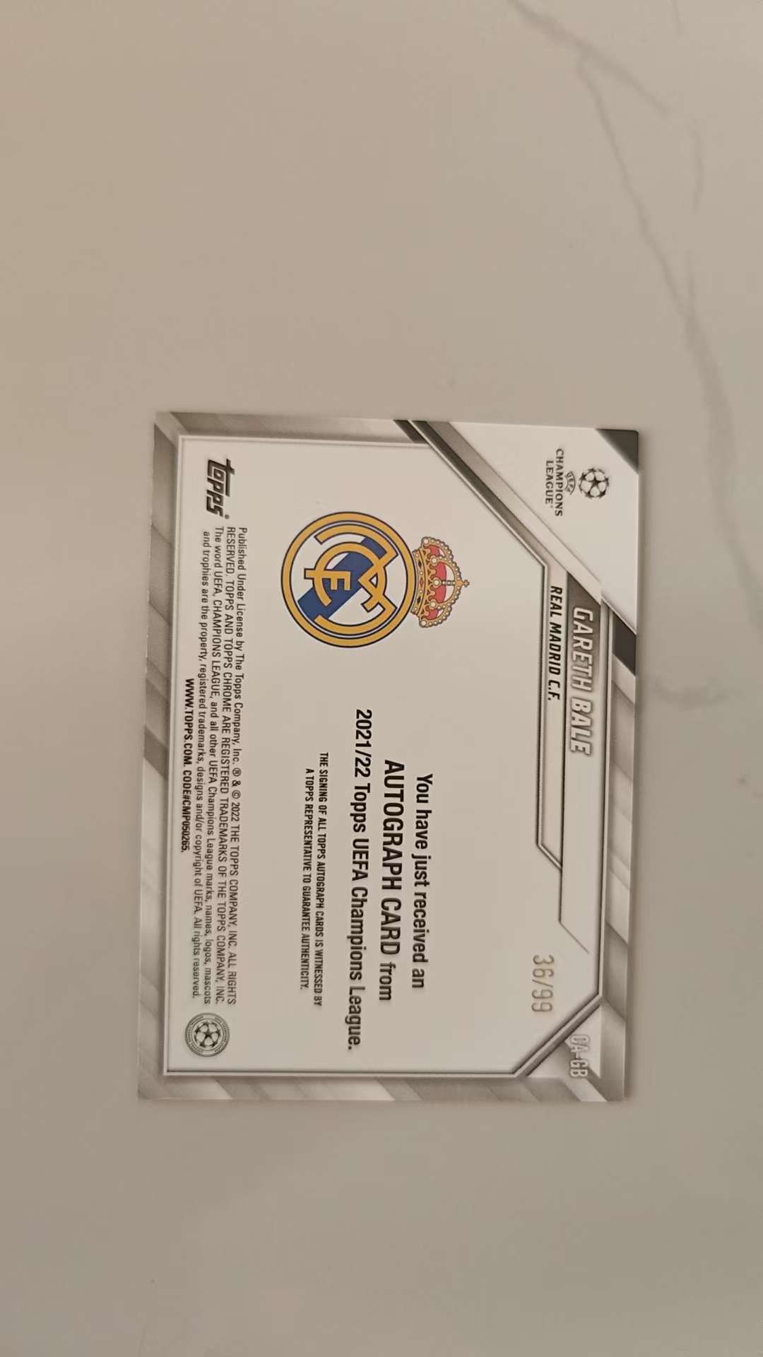2021-22 Topps Chrome Gareth Bale 加雷斯·贝尔 皇马 威尔士 大圣贝尔 带编签字 36/99 绿折 墨迹完美 欧战TC正系列 传奇巨星