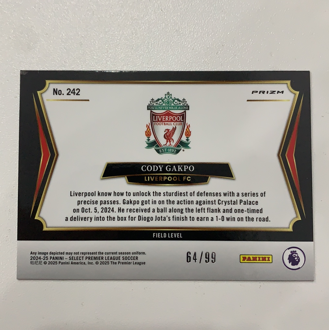 2024-25 Panini Select Premier League Cody Gakpo 英超 利物浦 加克波 三级 99编 粉折 折射 英超冠军 孤云