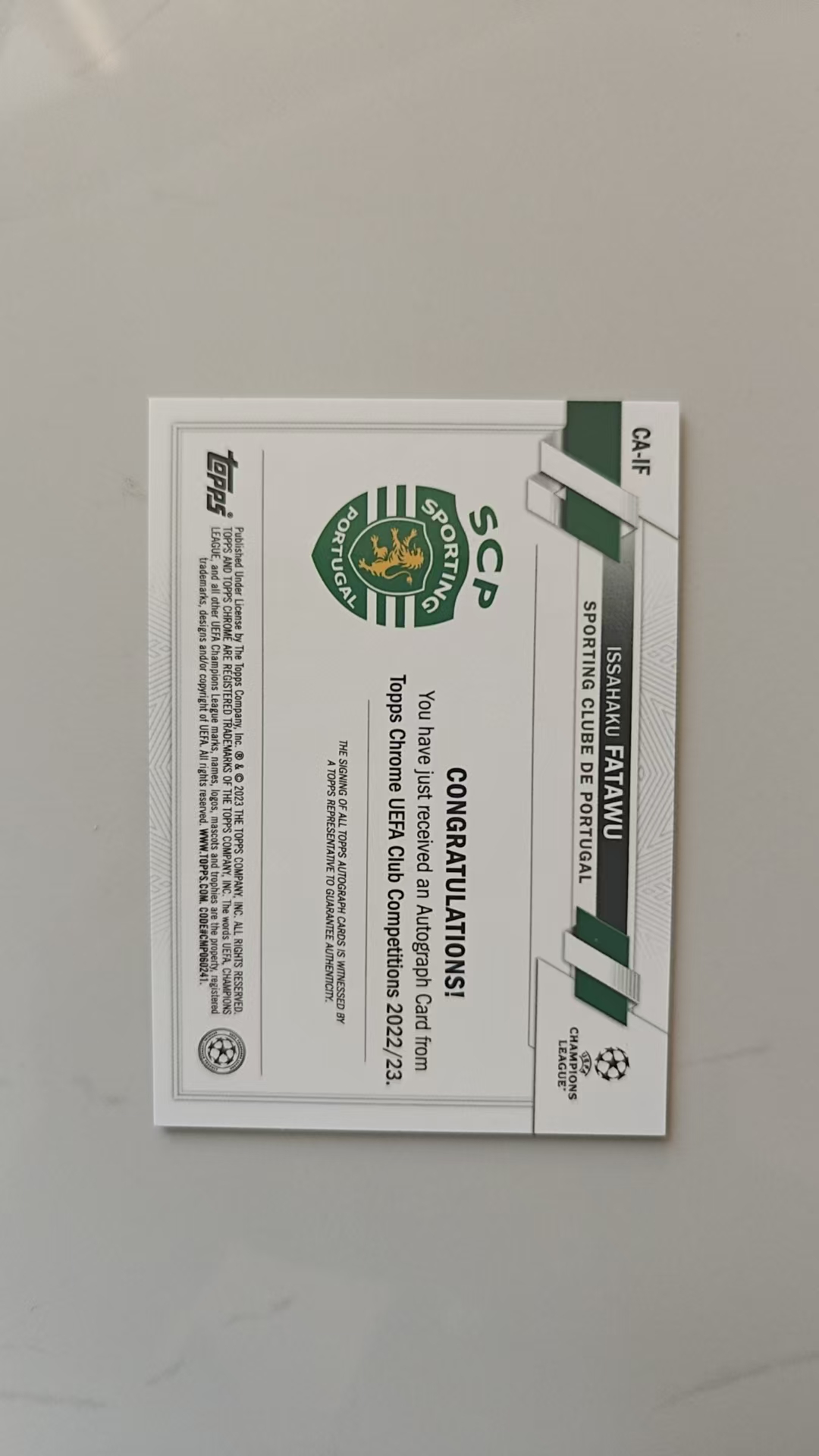 2022-23 Topps Chrome Issahaku Fatawu RC 伊萨哈库·法塔武 葡萄牙体育 加纳 新秀 签字 墨迹完美 欧战TC正系列 莱斯特城