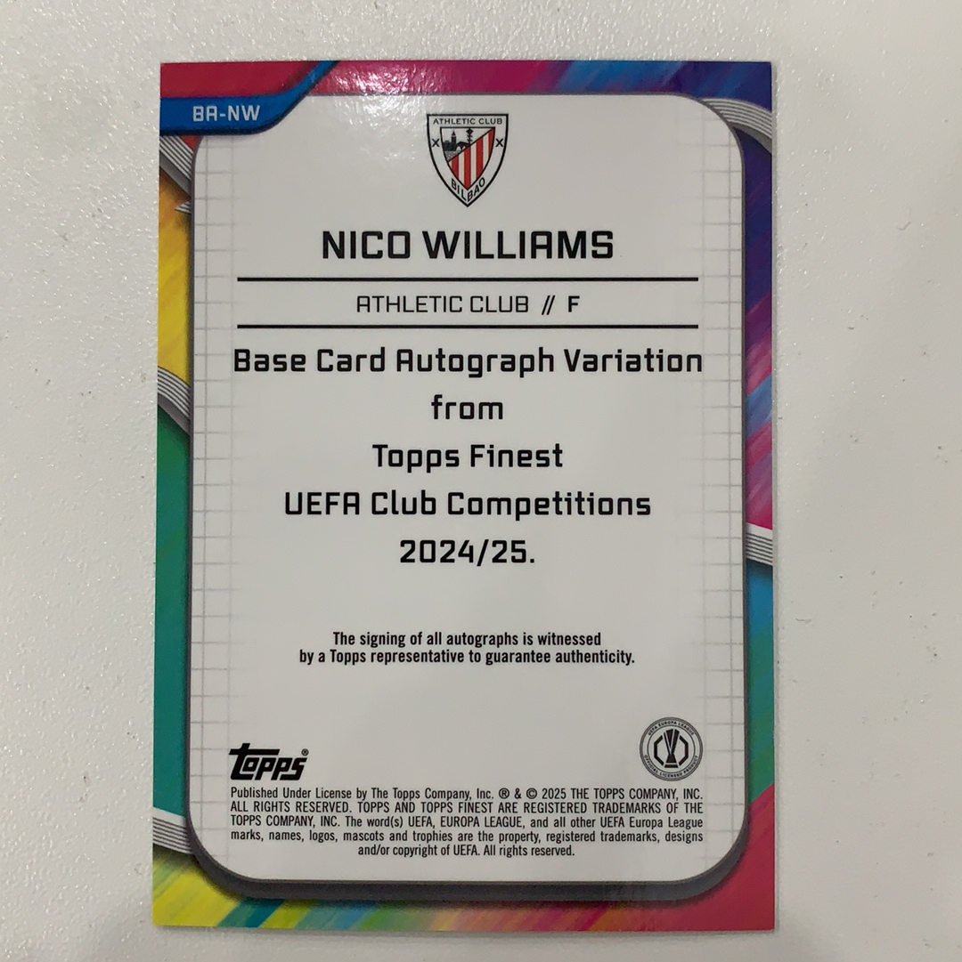 2024-25 Topps Finest Nico Williams 欧冠 毕尔巴鄂竞技 尼科 威廉姆斯 西班牙 签字 蓝折 150编 孤云
