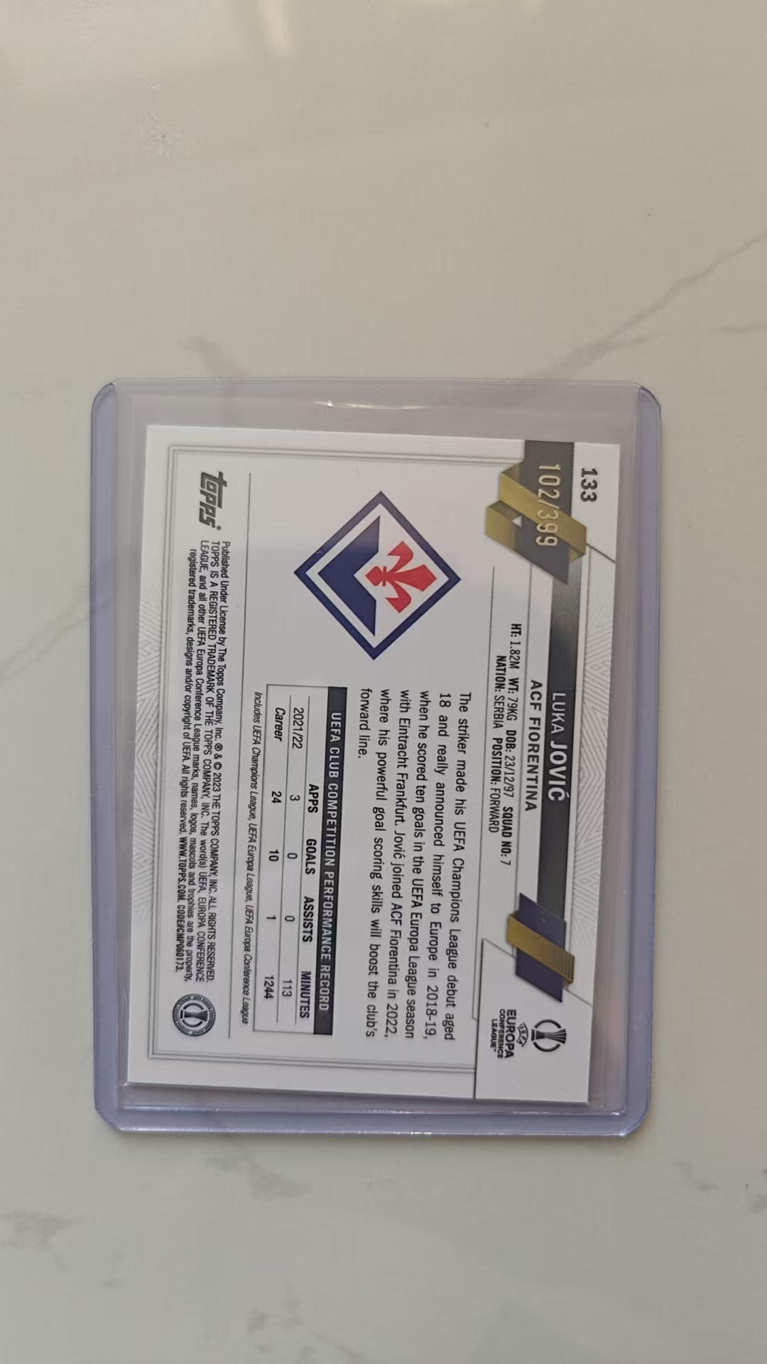 2022-23 Topps Chrome Luka Jovic 卢卡·约维奇 佛罗伦萨 塞尔维亚 102/399 霓虹绿X射线折 欧战TC正系列 皇马 AC米兰 雅典AEK