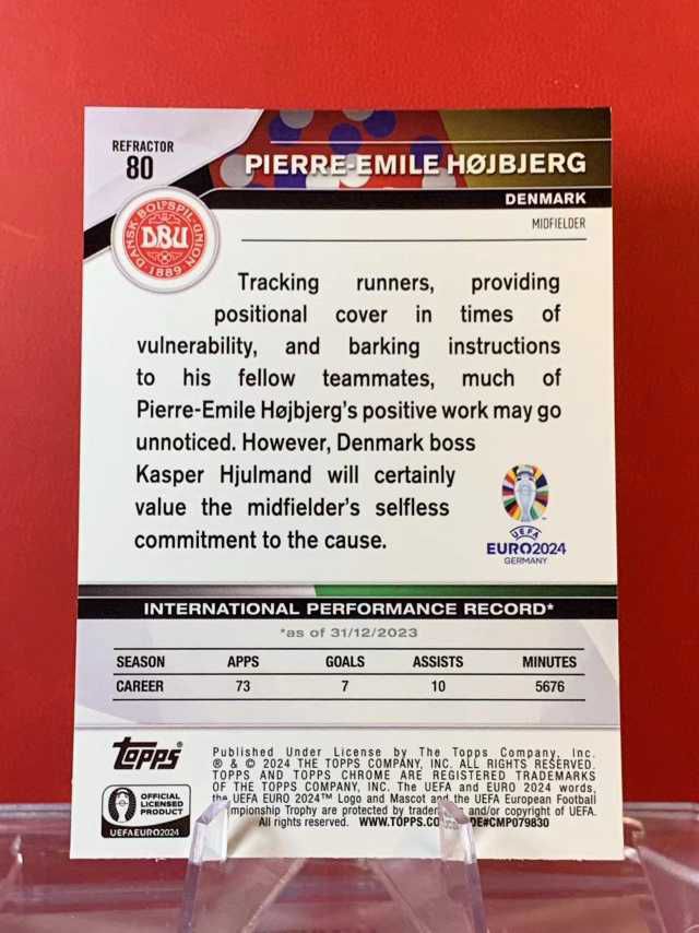 (老末代拍)E09 2023-24 Topps Chrome  Pierre Emile Hojbjerg 赫伊别尔 丹麦 欧洲杯元年TC 银折 顺丰寄付 免费代拍 不保卡品
