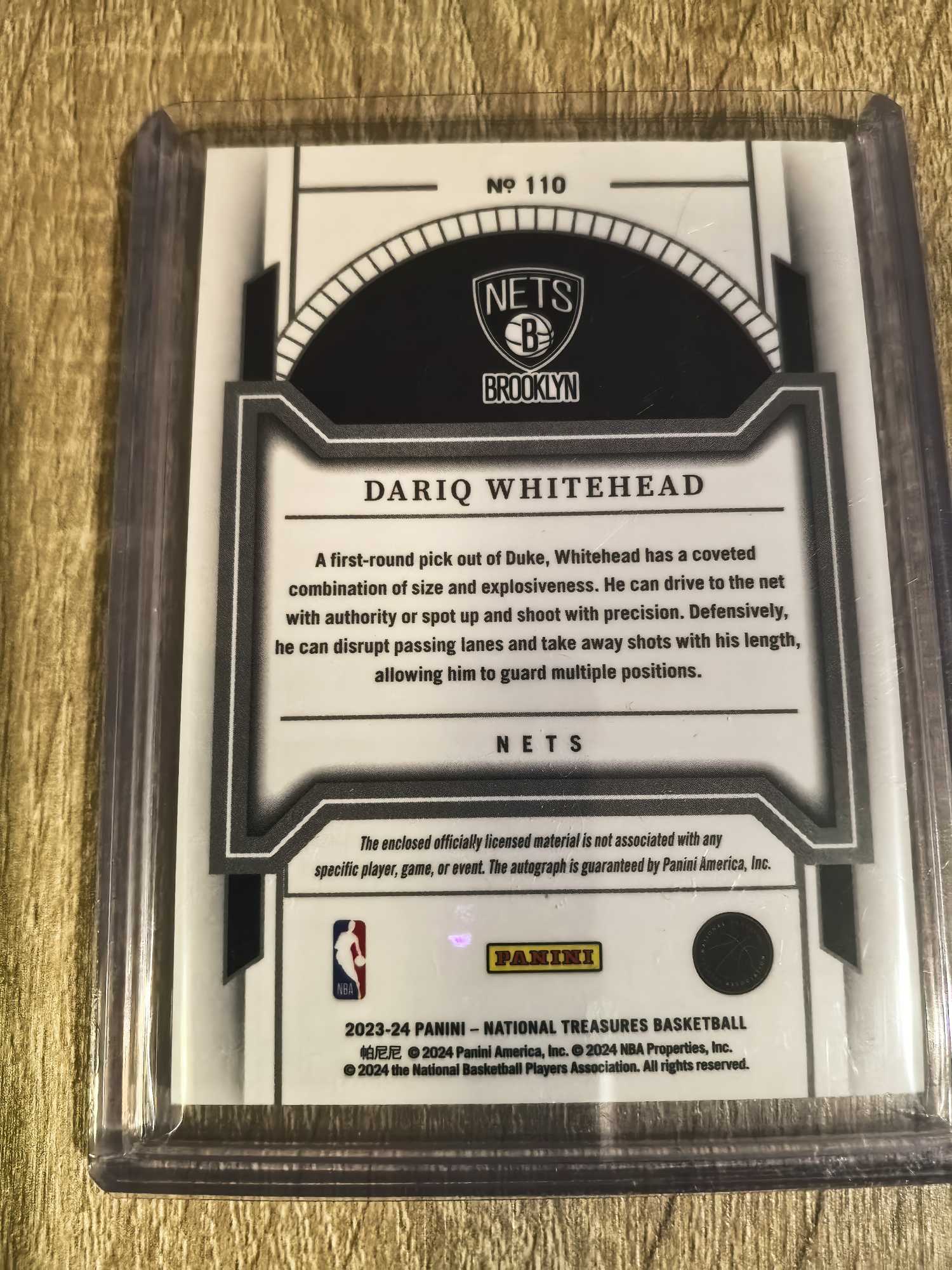 2023-24 Panini National Treasures Dariq Whitehead 达里克 怀特黑德 10/15编 签字 fotl新秀rc 卡签 物料签 rpa 先行 金平行 怀特海德