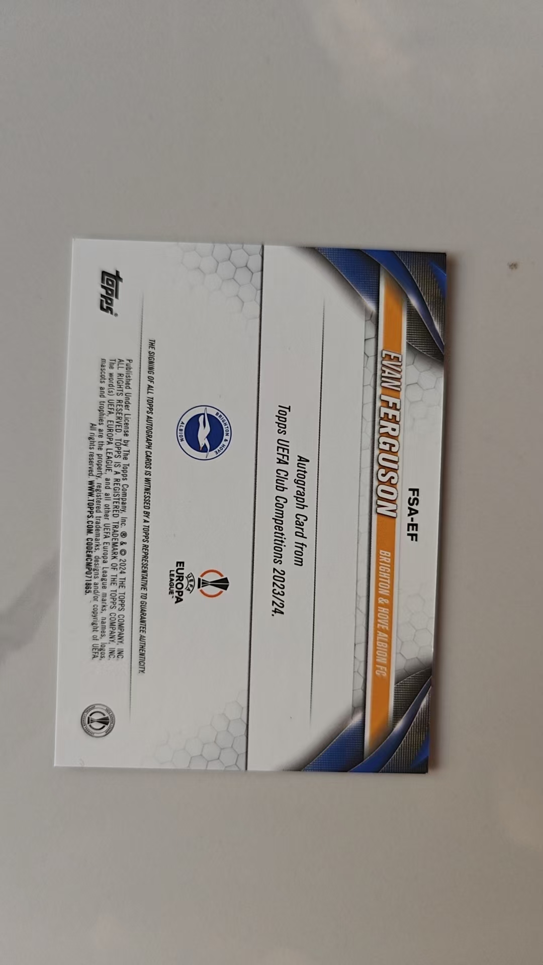 2023-24 Topps Chrome Evan Ferguson 埃文·弗格森 布莱顿 爱尔兰 签字 墨迹完美 欧战TC正系列 罗马