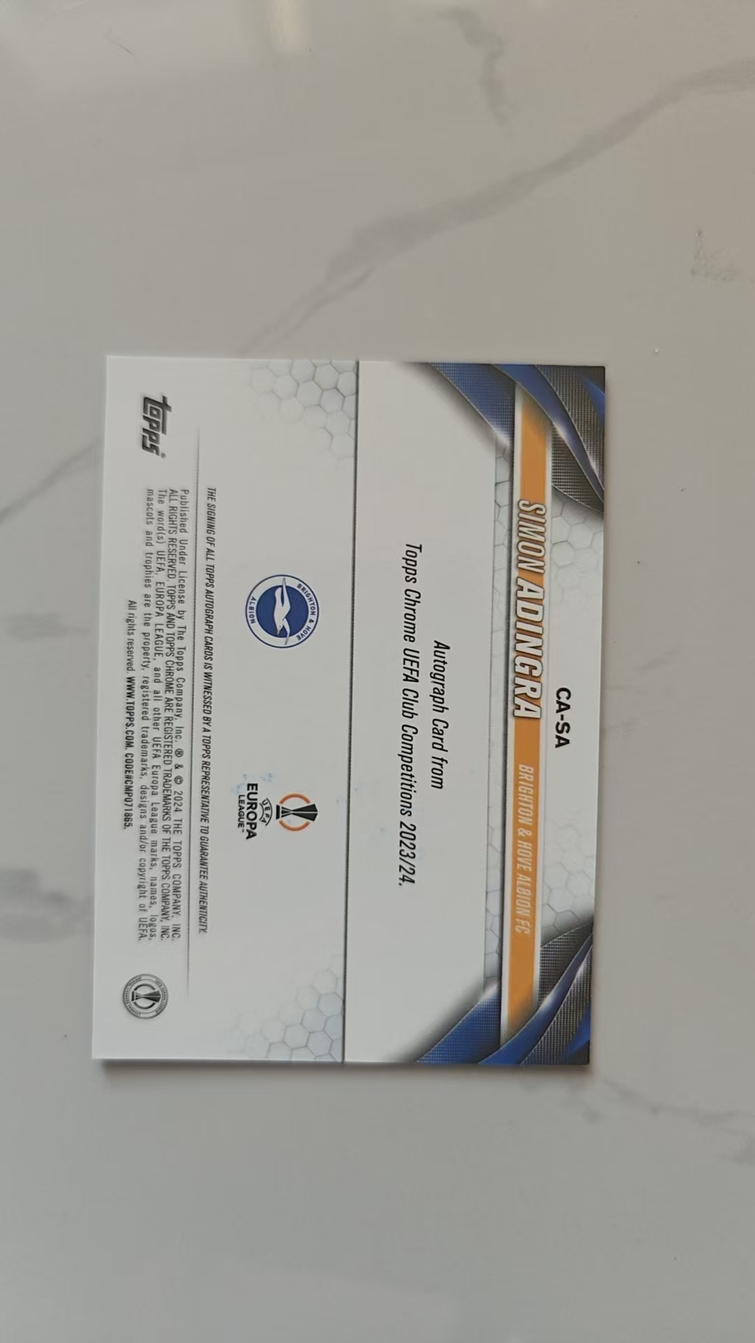 2023-24 Topps Chrome Simon Adingra 西蒙·阿丁格拉 布莱顿 科特迪瓦 签字 铭文签 背号签 墨迹完美 欧战TC正系列 桑德兰