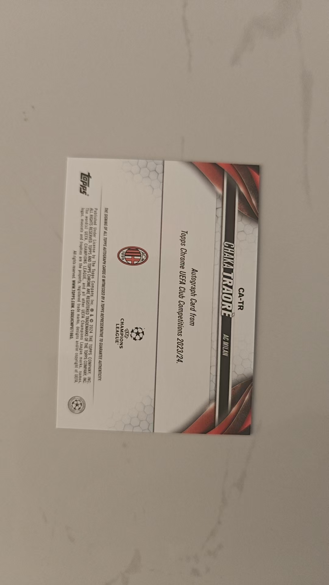 2023-24 Topps Chrome Chaka Traore RC 查卡·特劳雷 AC米兰 科特迪瓦 新秀 签字 青熔岩折 墨迹完美 欧战TC正系列 米兰未来