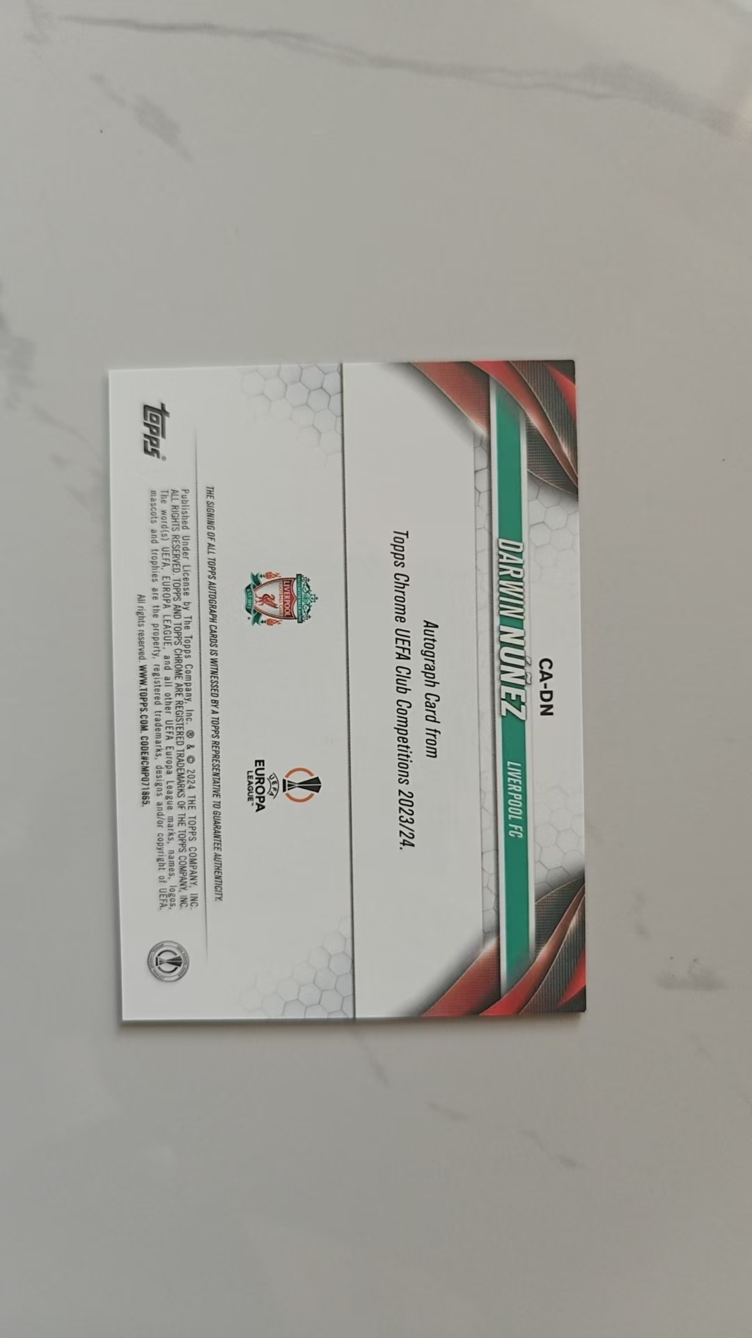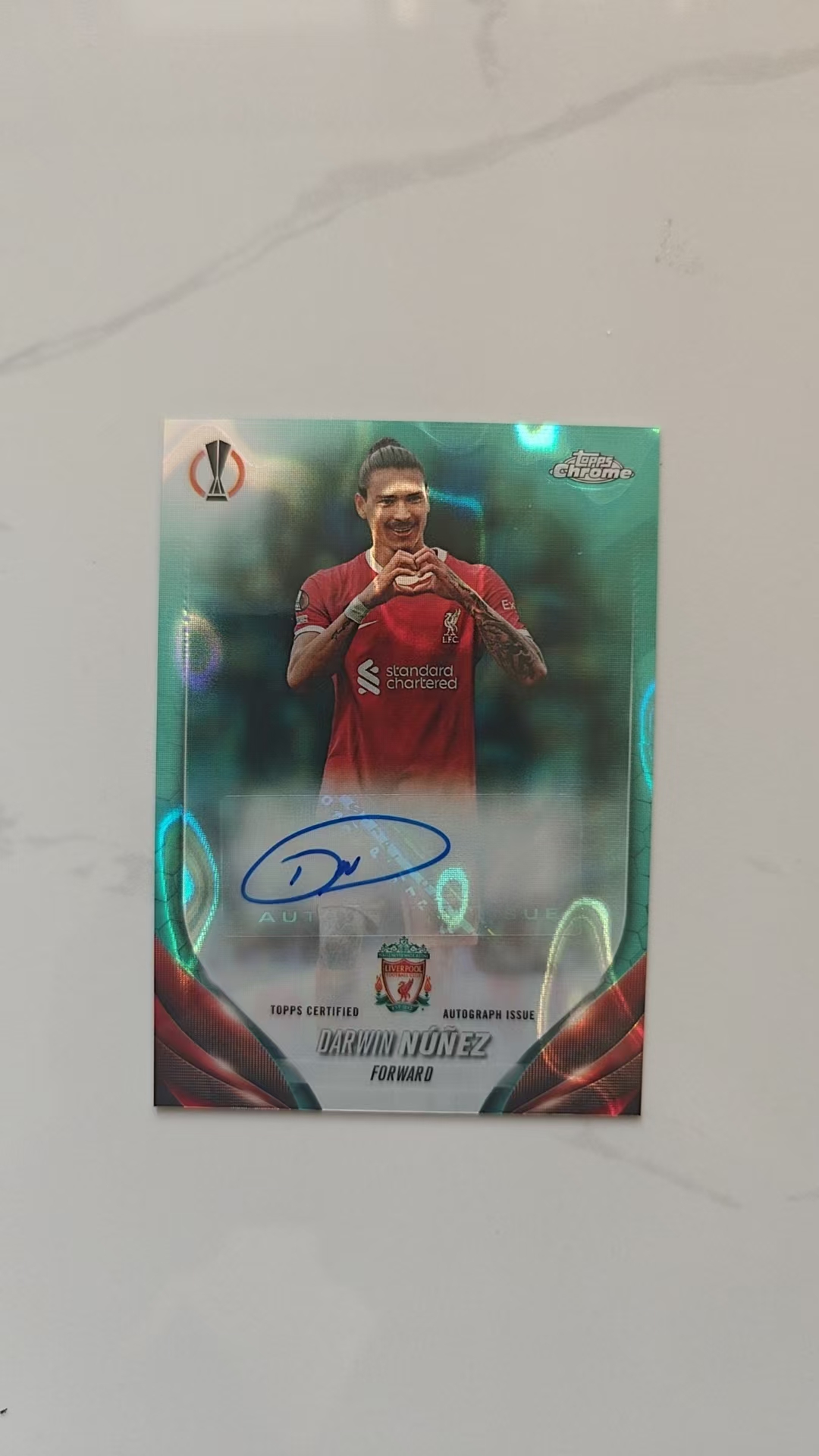 2023-24 Topps Chrome Darwin Nunez 达尔文·努涅斯 利物浦 乌拉圭 签字 青熔岩折 墨迹完美 欧战TC正系列 利亚德新月