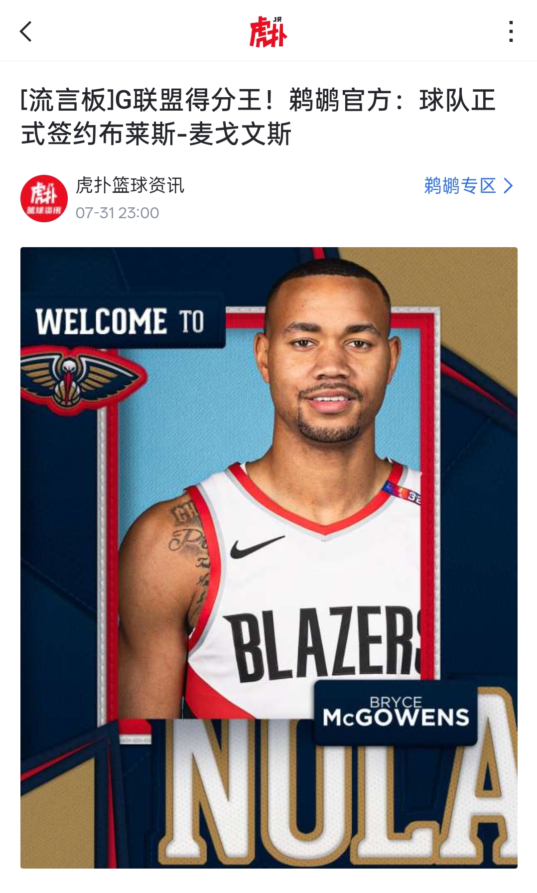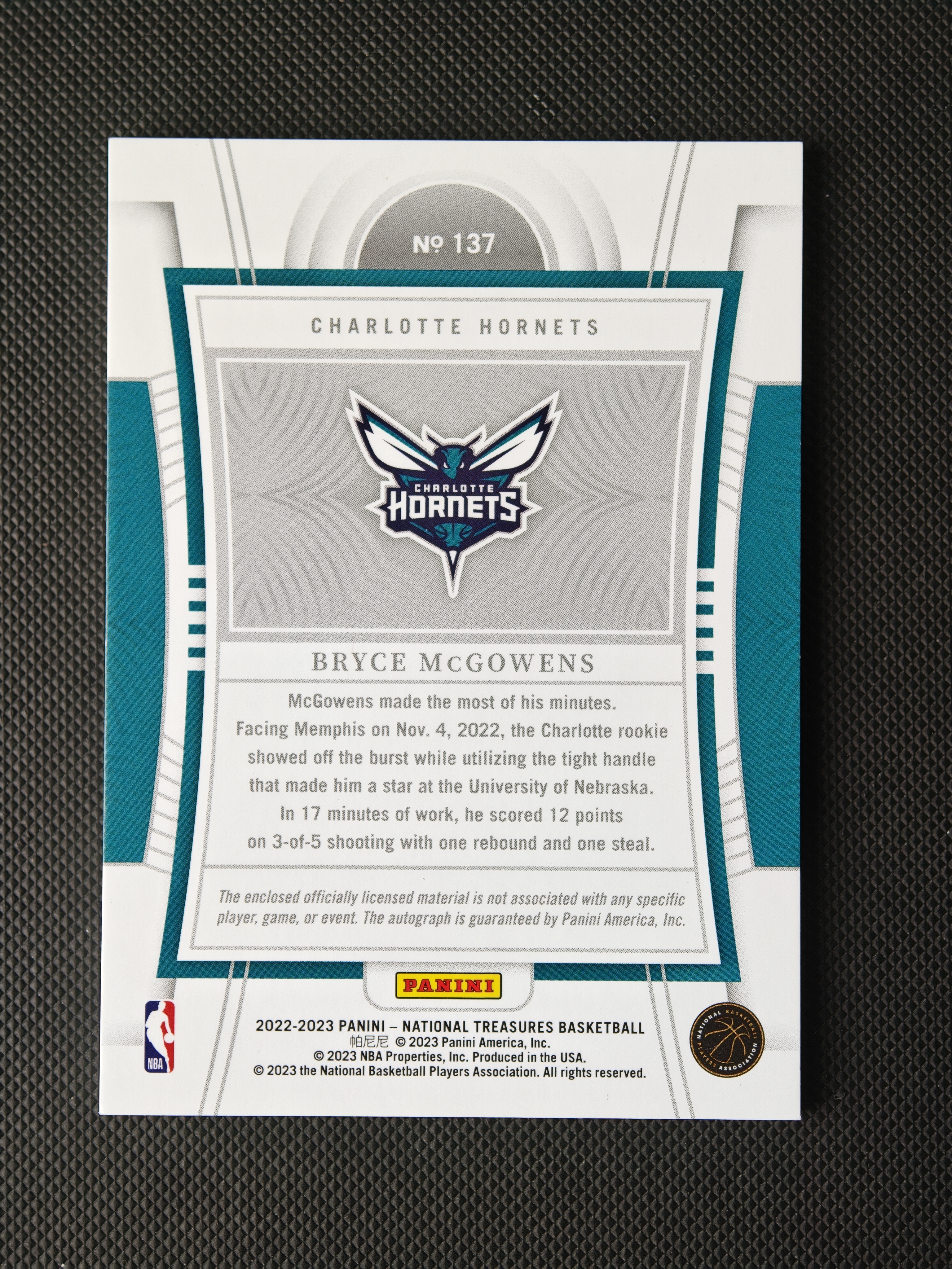 2022-23 Panini National Treasures Bryce McGowens RC 签约鹈鹕 布莱斯 麦戈文斯 麦高恩斯 99编国宝正RPA 亲笔卡签签字 球衣三色切割 细节如图