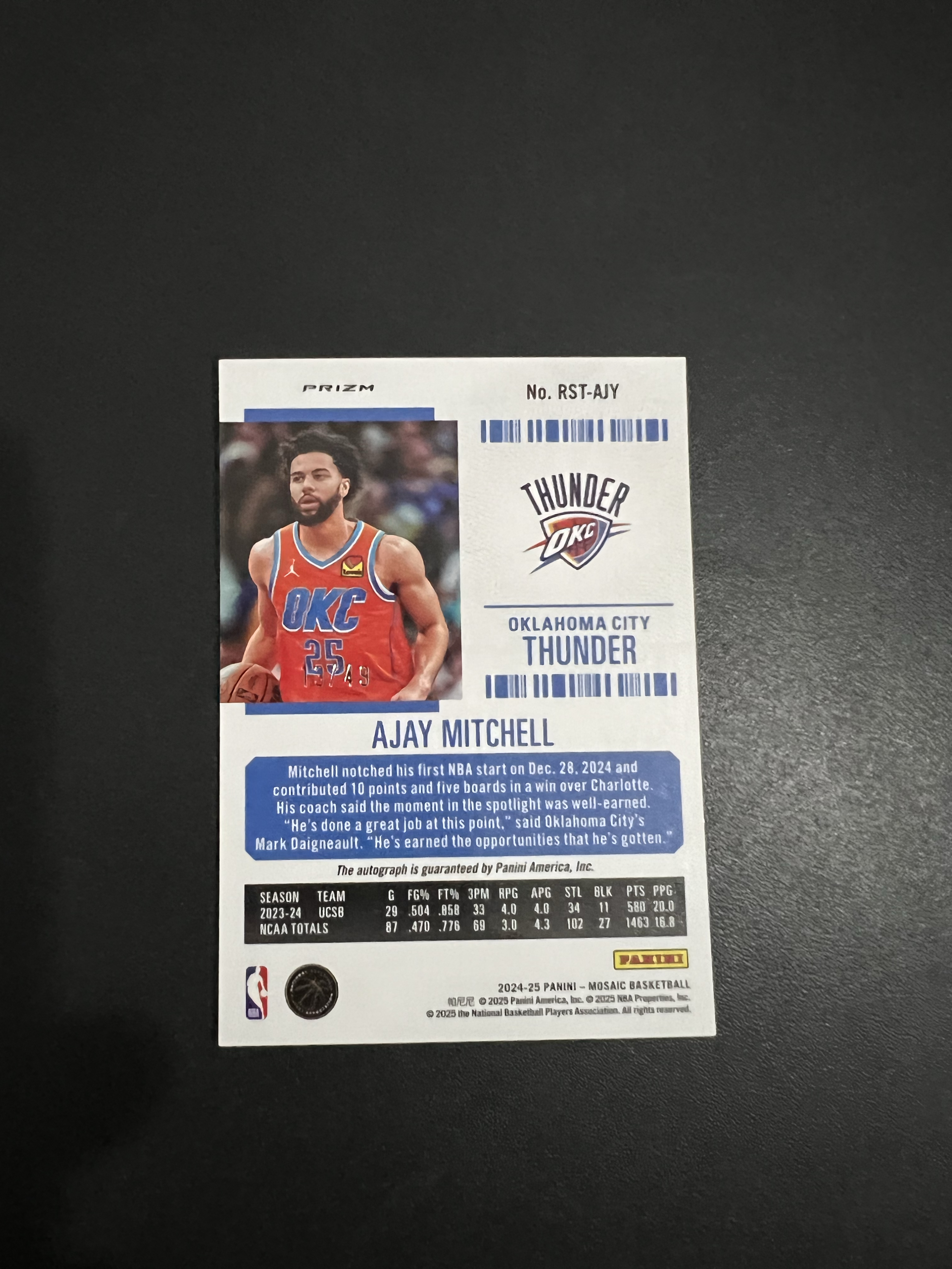 2024-25 Panini Mosaic Ajay Mitchell RC 马赛克 雷霆 阿杰伊 米切尔 49编 蓝折 新秀 签字 新秀签 球票签 潜力新秀 收藏极佳 卡品如图