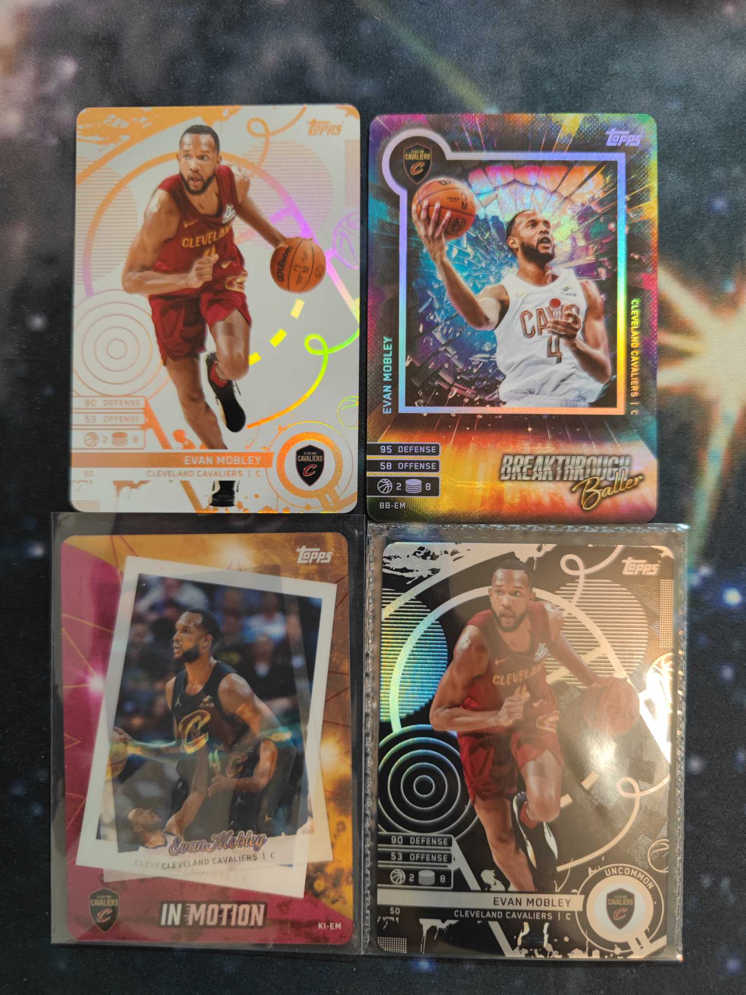 2025 Topps NBA MATCH ATTAX Evan Mobley 《琼泽代卖》卡游 游戏版 埃文 莫布利 骑士 1:6黑折 银折 3d全息特卡SSP 破局之将 2彩虹4lot(S总)